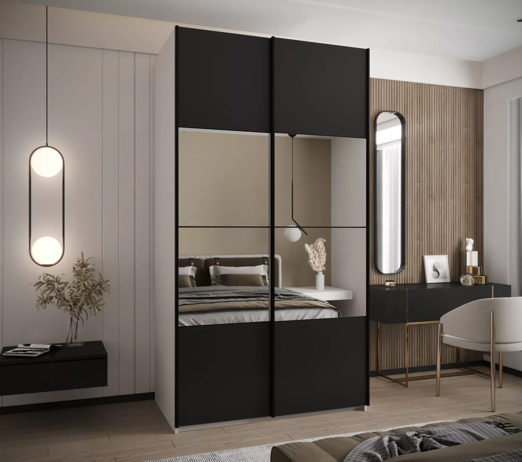 Dvoudveřová skříň SAMARA 4 - 140 cm, bílá / černá / černá