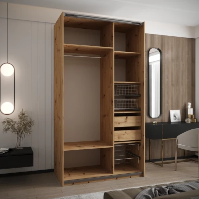 Dvoudveřová skříň SAMARA 4 představuje spojení elegance a funkcionality. Nabízí dostatek úložného prostoru v podobě policového systému a 2 šatních tyčí.