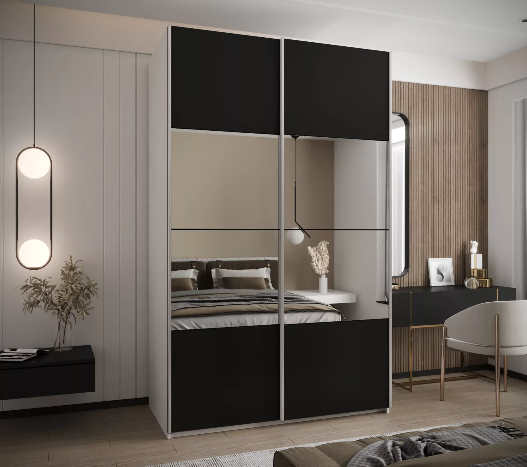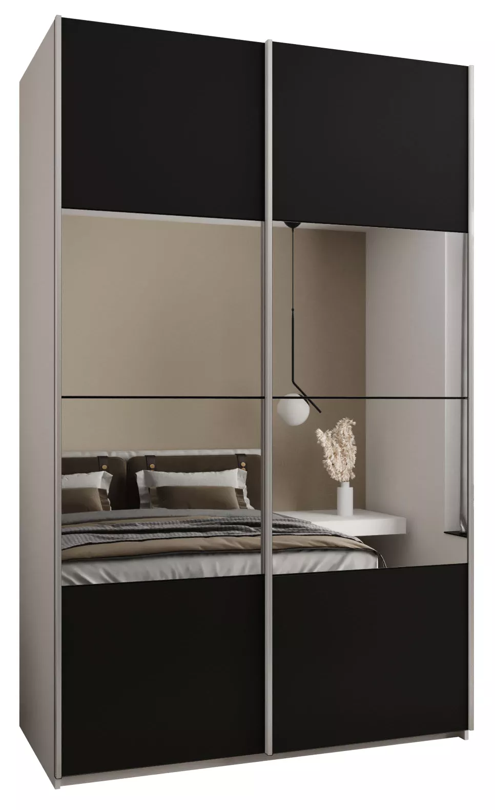 Dvoudveřová skříň SAMARA 4 - 160 cm, bílá / černá / stříbrná