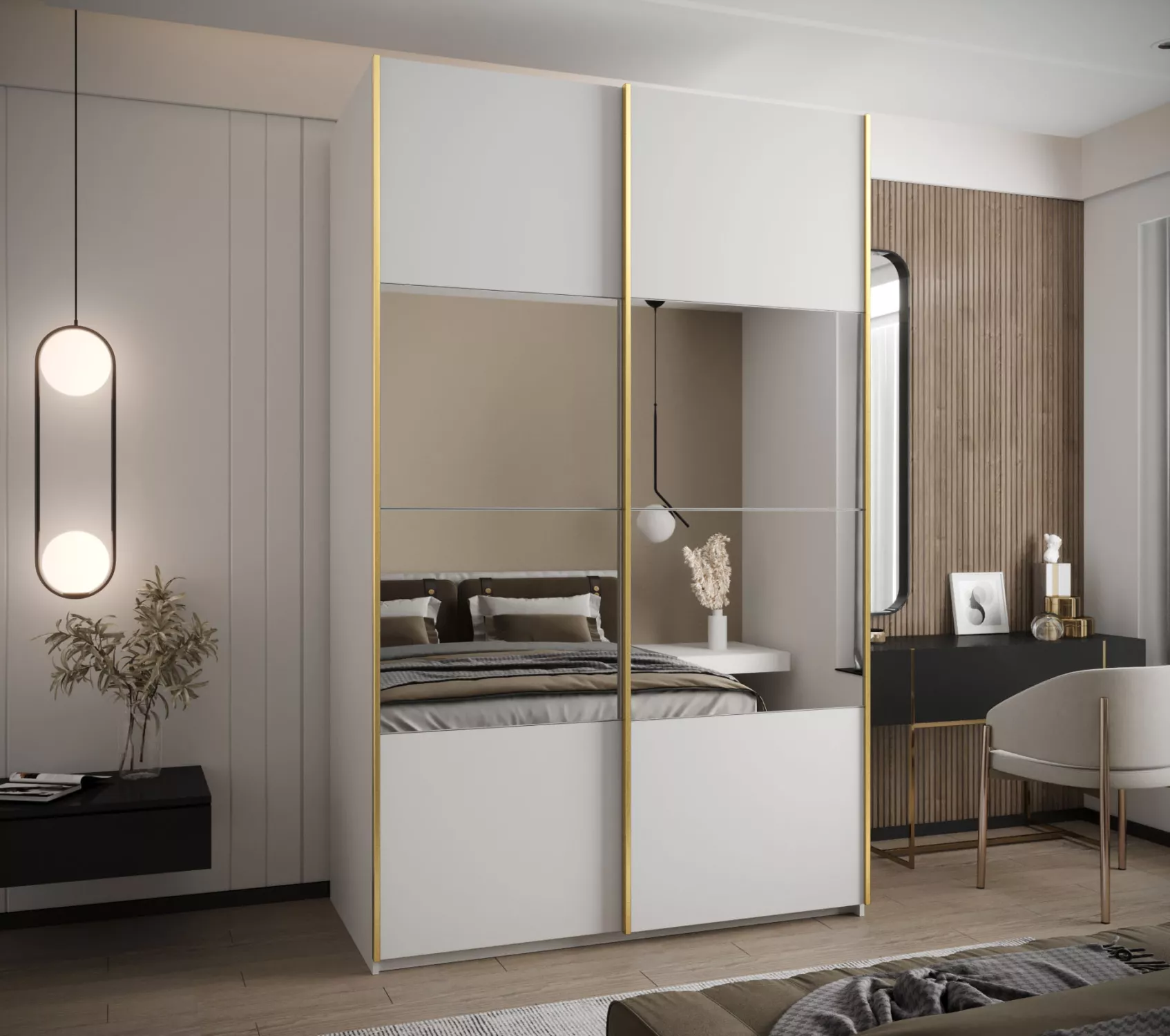 Dvoudveřová skříň SAMARA 4 - 160 cm, bílá / zlatá