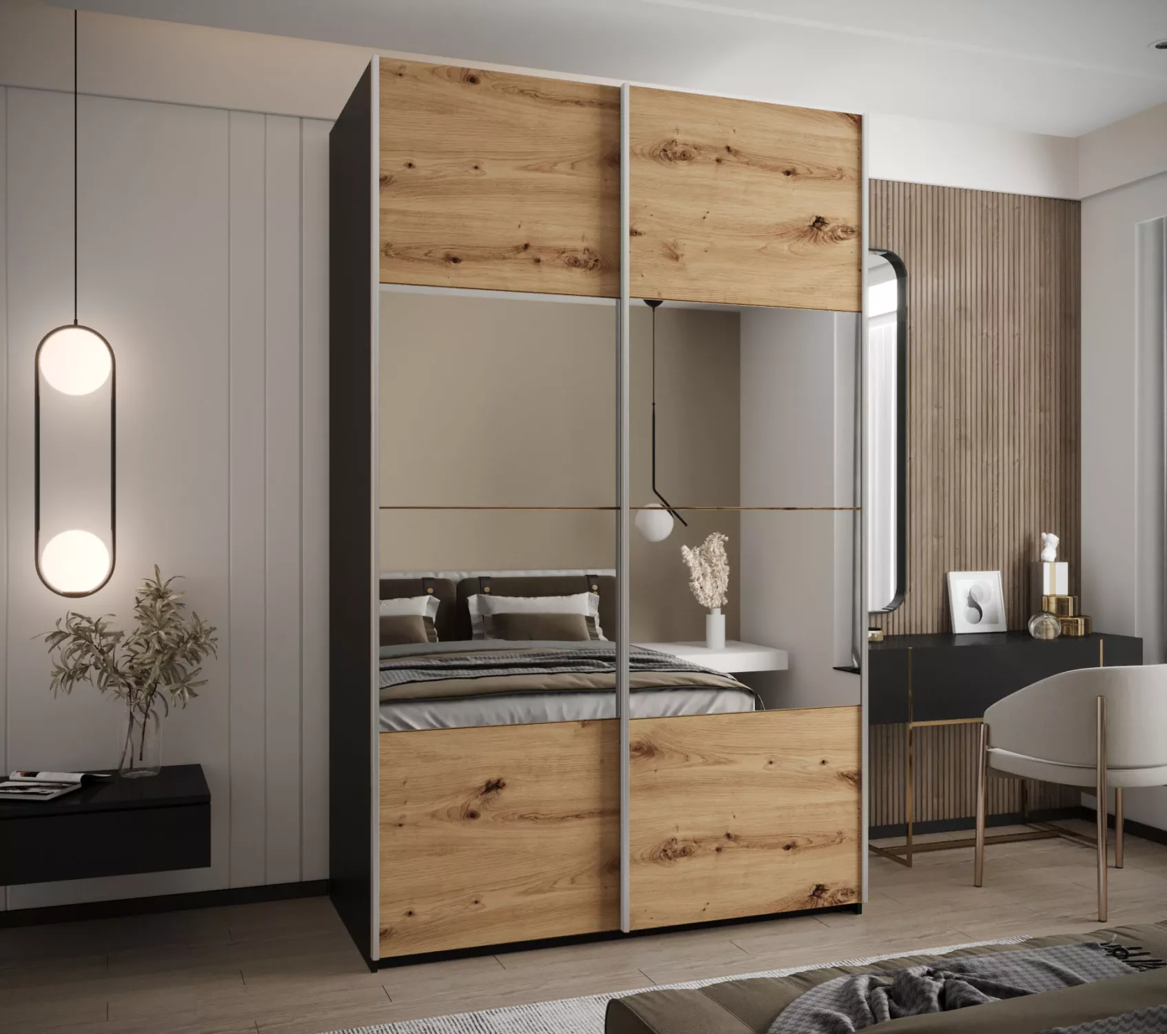 Dvoudveřová skříň SAMARA 4 představuje spojení elegance a funkcionality. Nabízí dostatek úložného prostoru v podobě policového systému a 2 šatních tyčí.