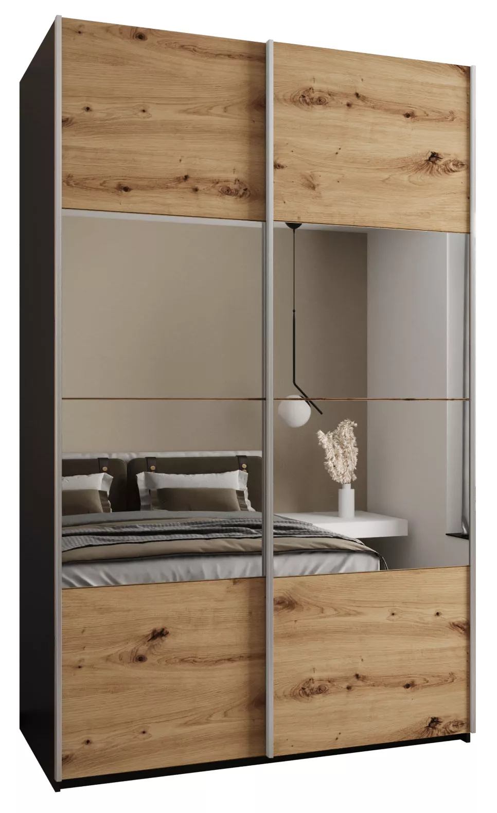 Dvoudveřová skříň SAMARA 4 - 160 cm, černá / dub artisan / stříbrná