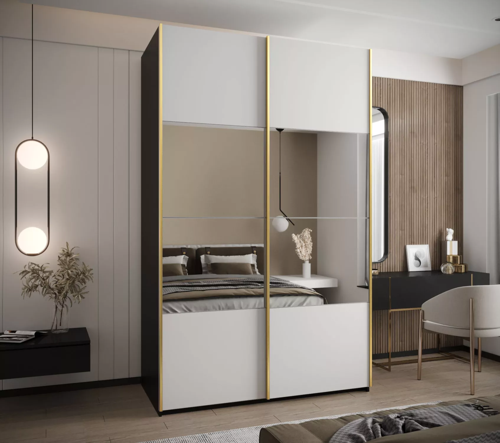 Dvoudveřová skříň SAMARA 4 - 160 cm, černá / bílá / zlatá