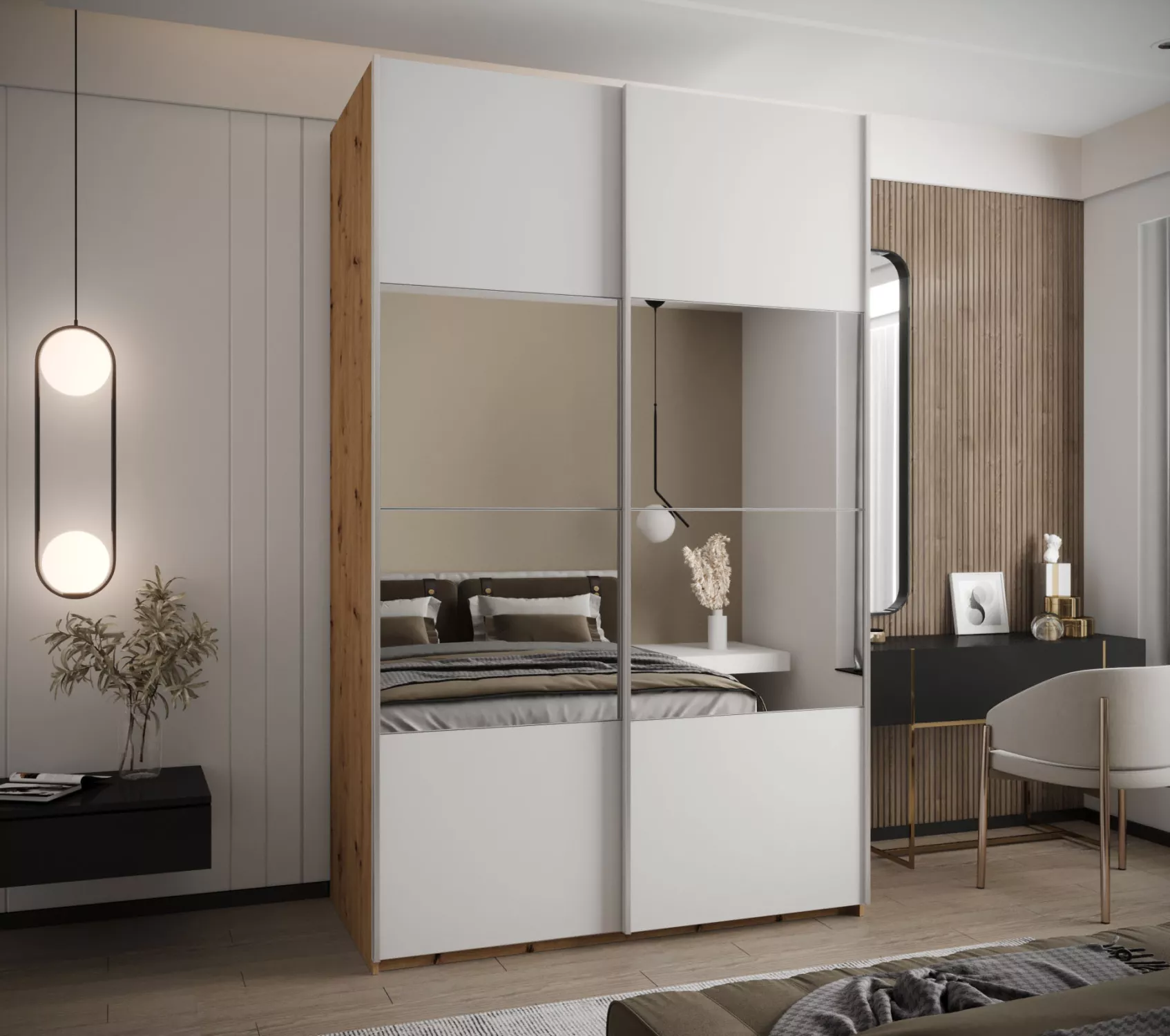 Dvoudveřová skříň SAMARA 4 představuje spojení elegance a funkcionality. Nabízí dostatek úložného prostoru v podobě policového systému a 2 šatních tyčí.
