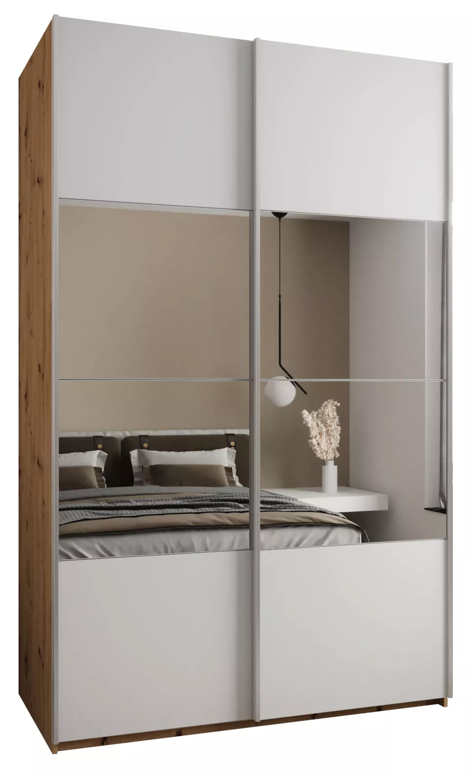 Dvoudveřová skříň SAMARA 4 - 160 cm, dub artisan / bílá / stříbrná