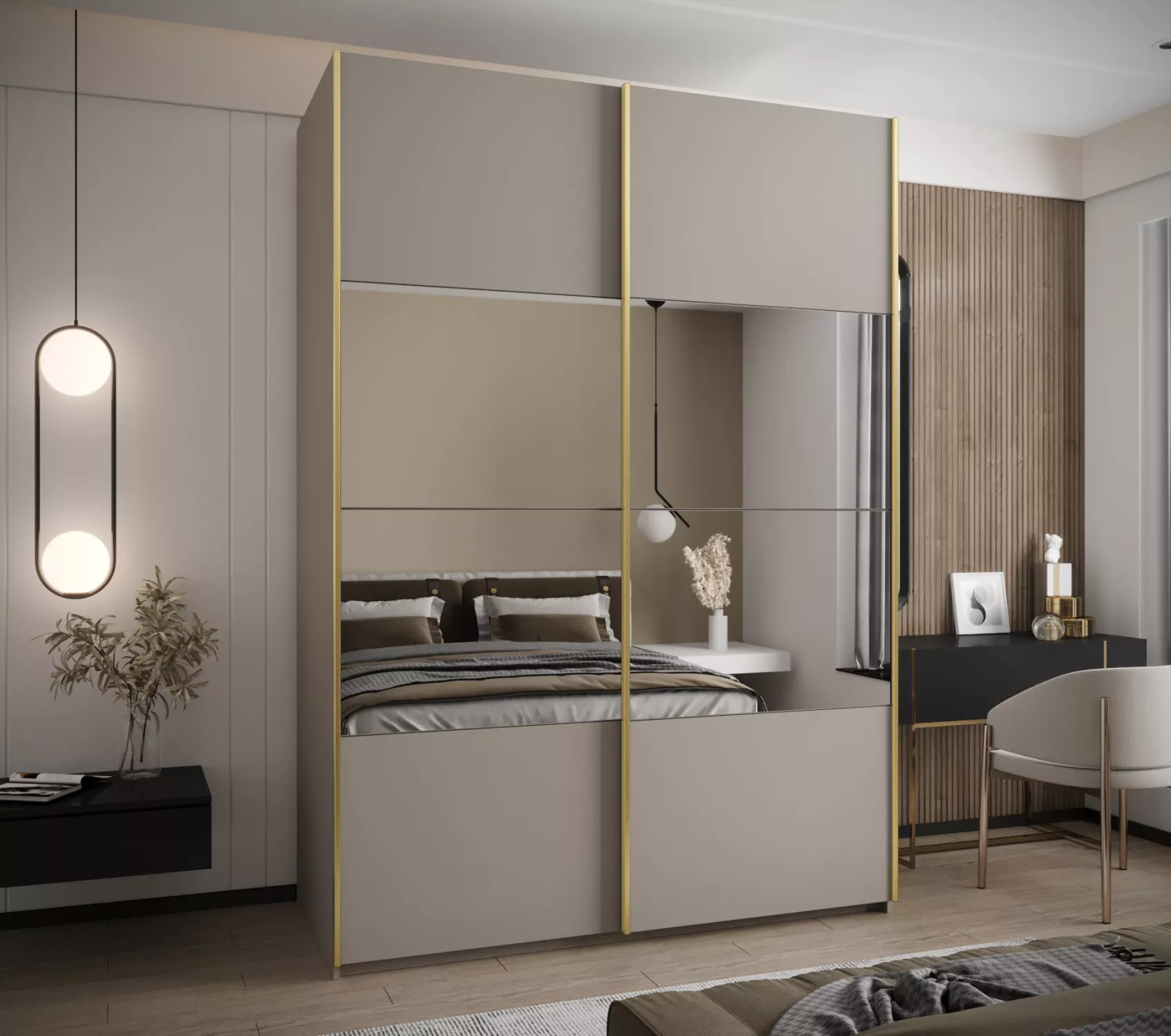 Dvoudveřová skříň SAMARA 4 - 170 cm, kašmír / zlatá