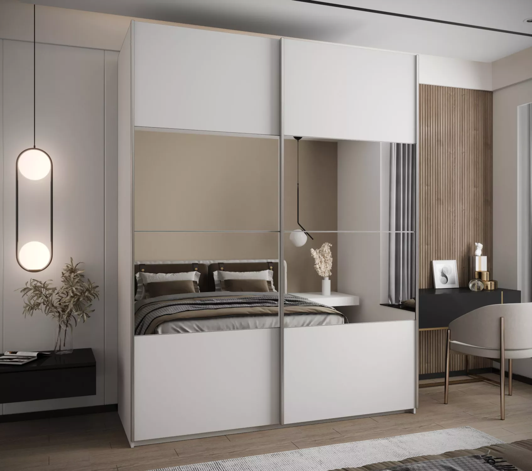 Dvoudveřová skříň SAMARA 4 představuje spojení elegance a funkcionality. Nabízí dostatek úložného prostoru v podobě policového systému a 2 šatních tyčí.