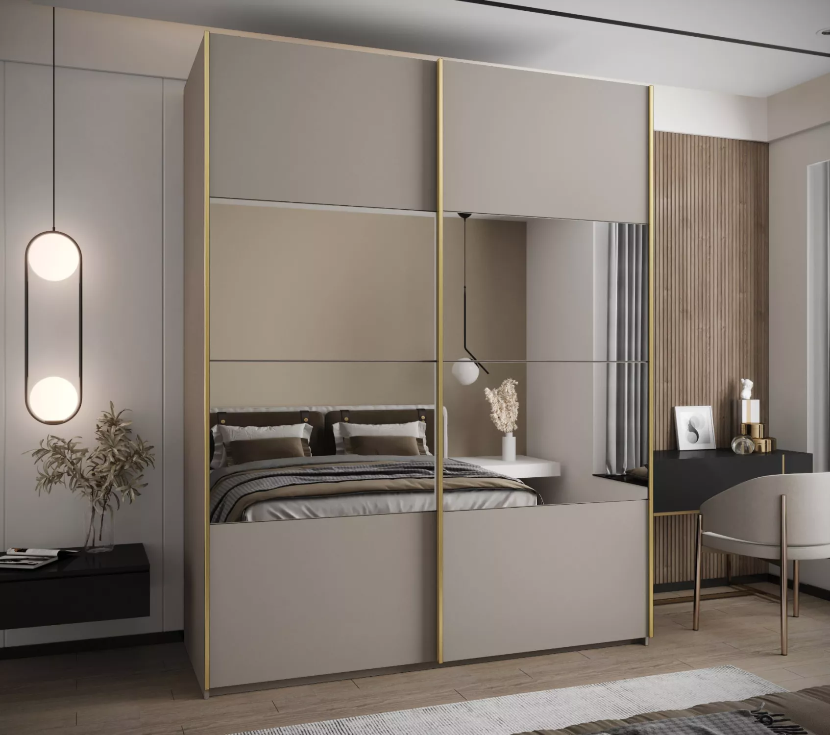 Dvoudveřová skříň SAMARA 4 - 190 cm, kašmír / zlatá