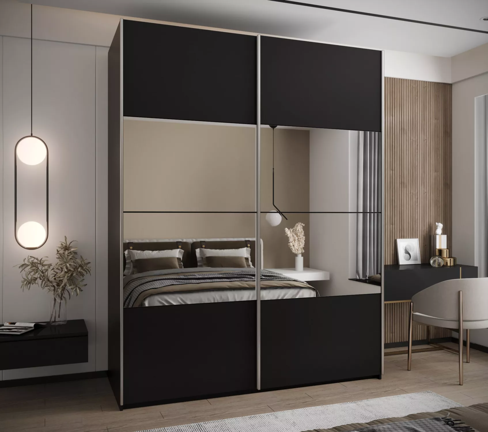 Dvoudveřová skříň SAMARA 4 - 200 cm, černá / stříbrná