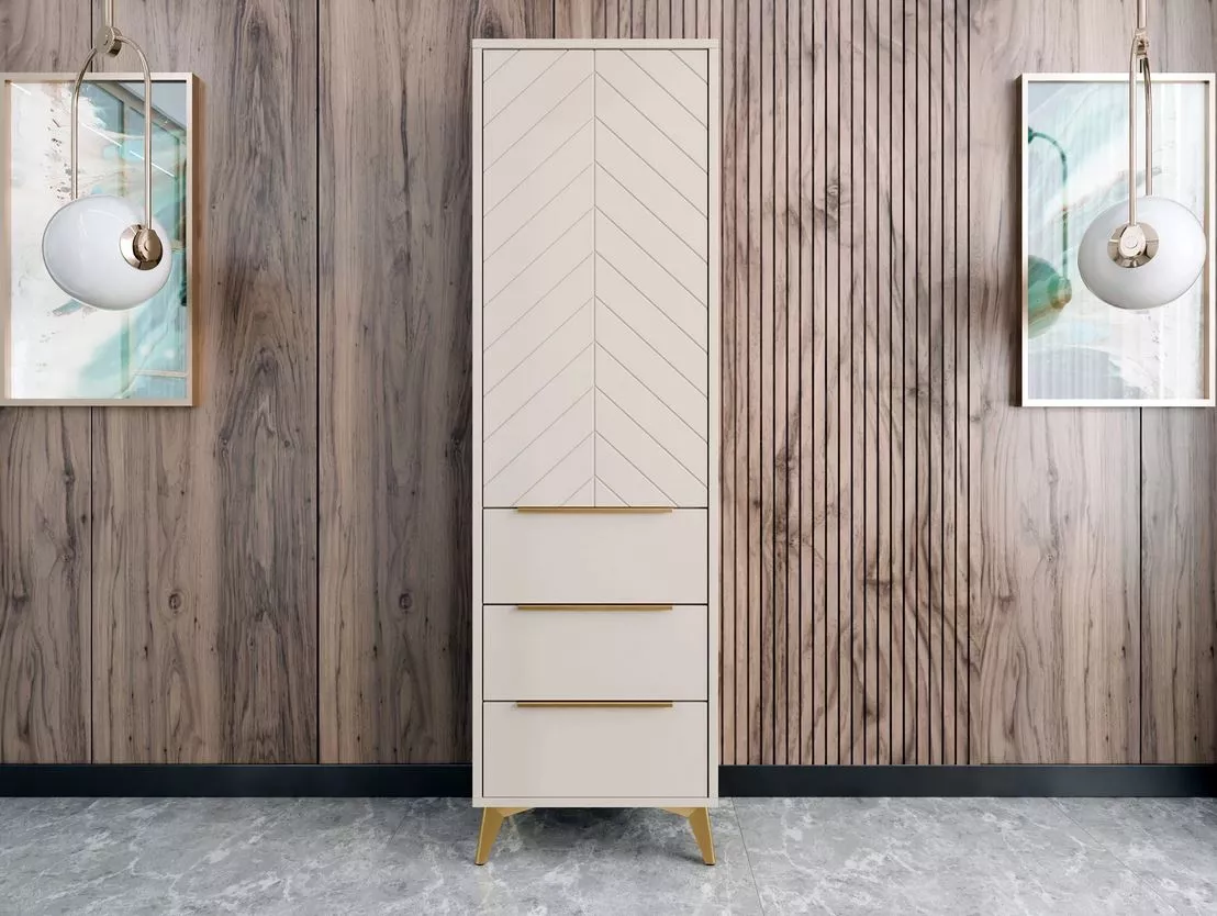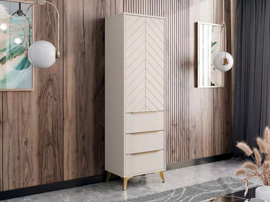Úzká šatní skříň 54 cm se šuplíky XELA - písková béžová