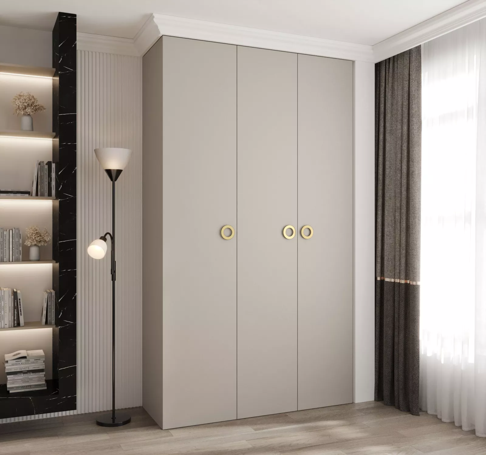 Šatní skříň s policemi 140/40 LORENA 1 - kašmír / zlatá