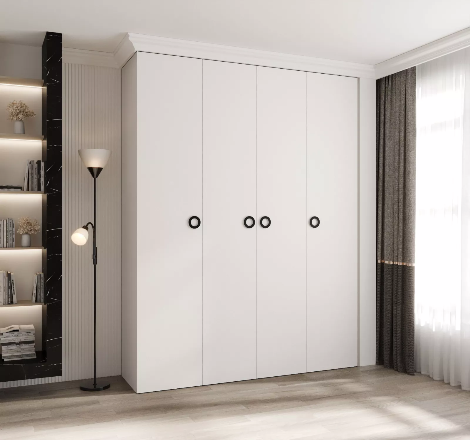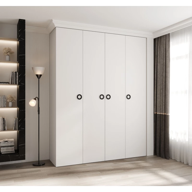 Šatní skříň s policemi LORENA se pyšní svou výškou a menší hloubkou. Využijete tak i malý prostor na maximum. Vnitřní uspořádání je tvořeno policemi a 2 výsuvnými šatními tyčemi. Praktickou součástí dvířek jsou decentní úchyty.