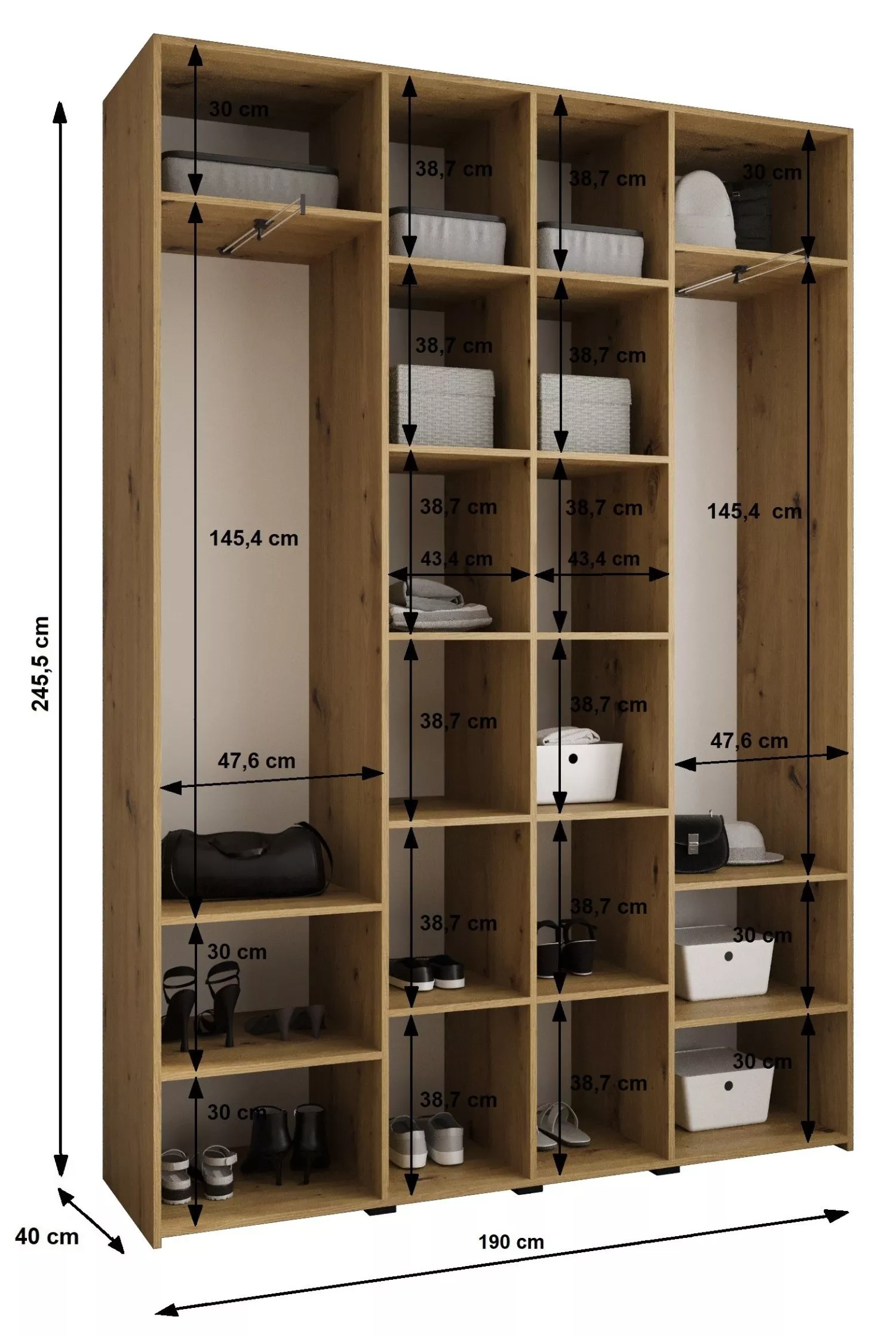 Šatní skříň s policemi LORENA se pyšní svou výškou a menší hloubkou. Využijete tak i malý prostor na maximum. Vnitřní uspořádání je tvořeno policemi a 2 výsuvnými šatními tyčemi. Praktickou součástí dvířek jsou decentní úchyty.
