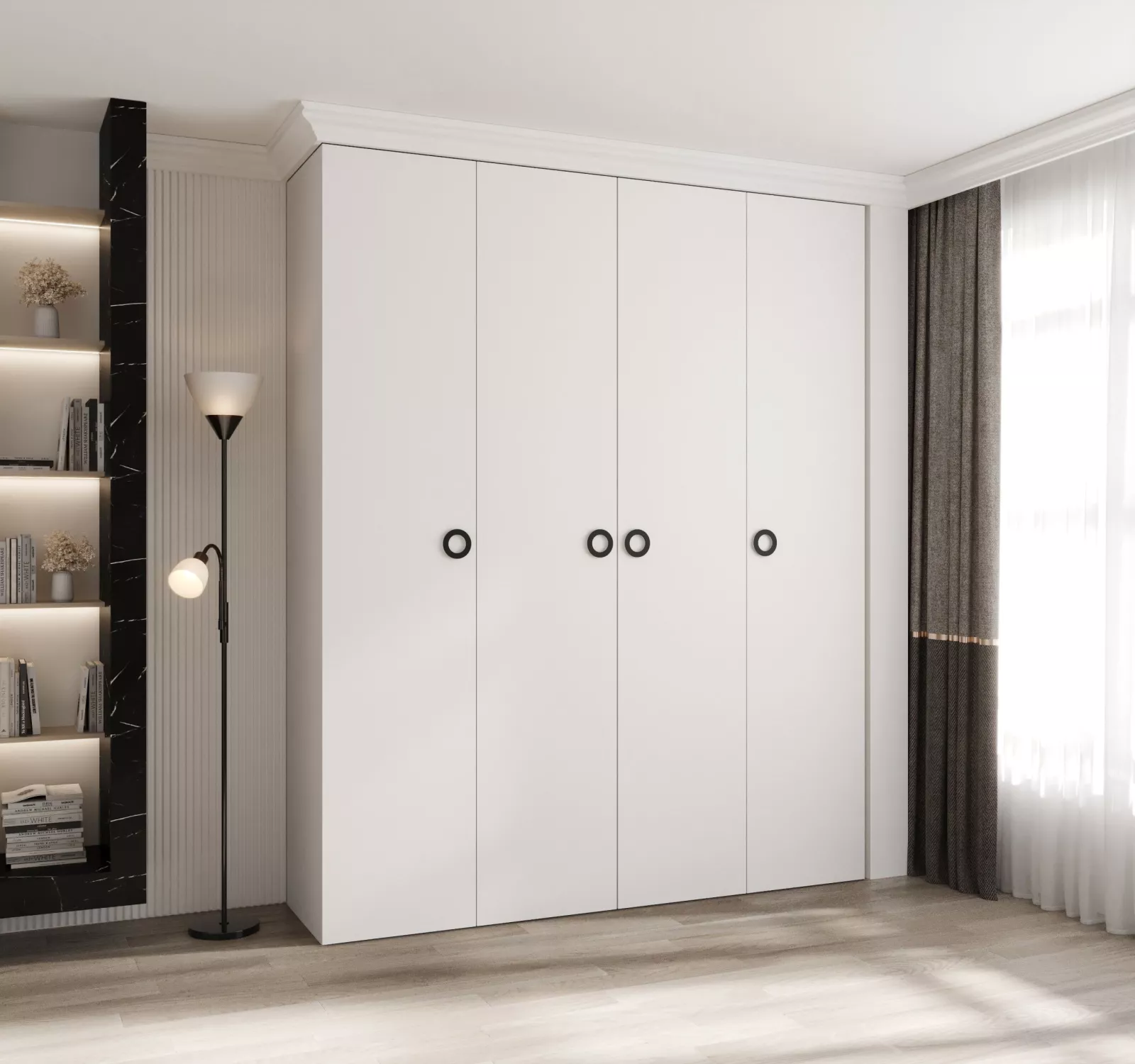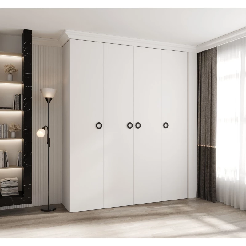 Šatní skříň s policemi LORENA se pyšní svou výškou a menší hloubkou. Využijete tak i malý prostor na maximum. Vnitřní uspořádání je tvořeno policemi a 2 výsuvnými šatními tyčemi. Praktickou součástí dvířek jsou decentní úchyty.