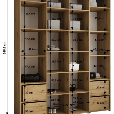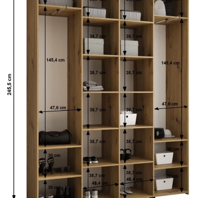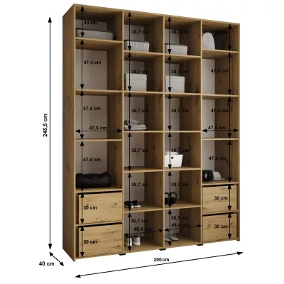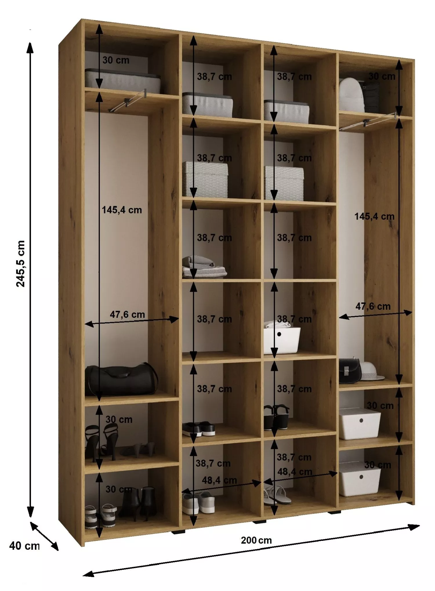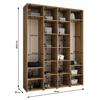 Šatní skříň s policemi 200/40 LORENA 1 - bílá / černá