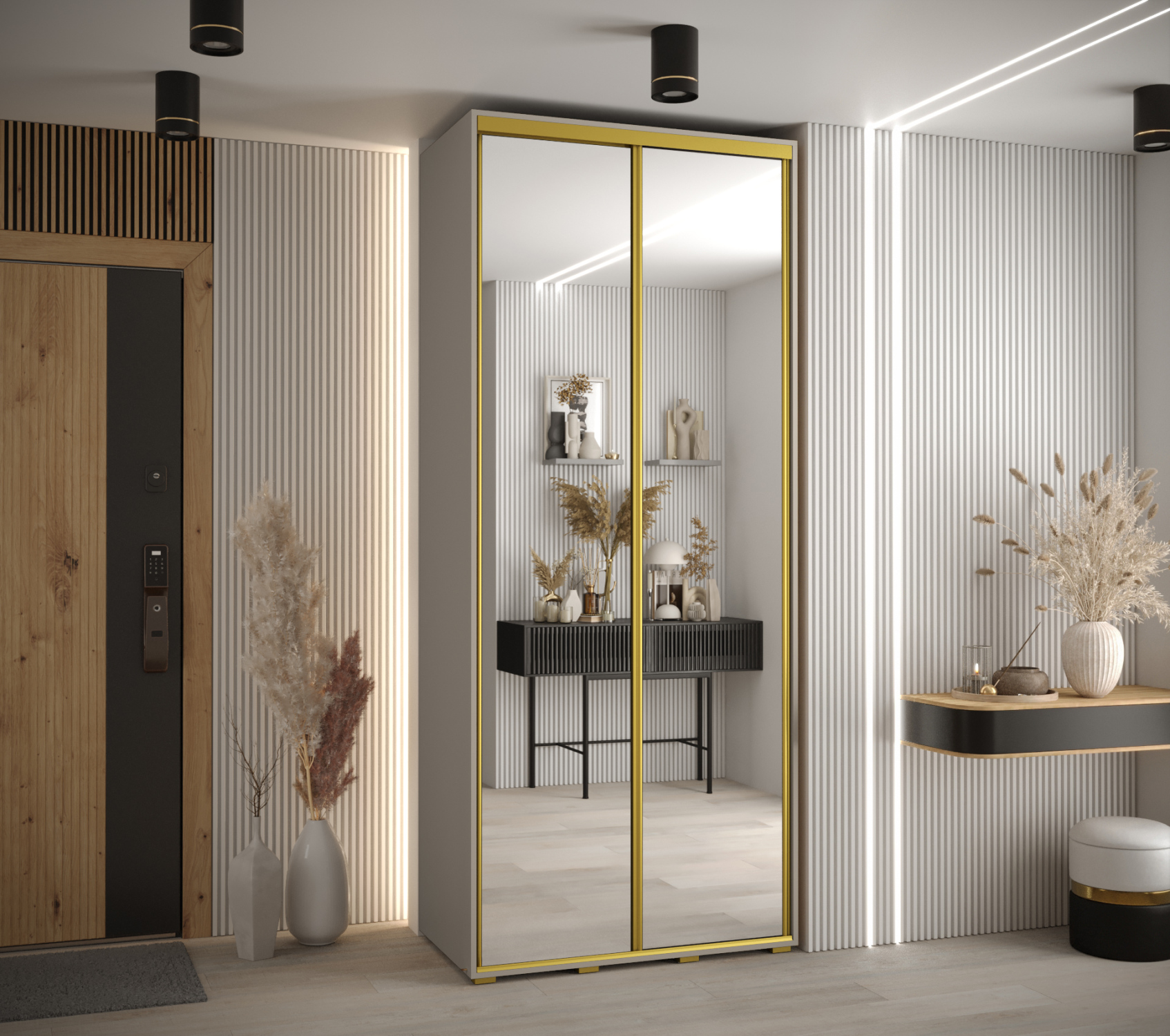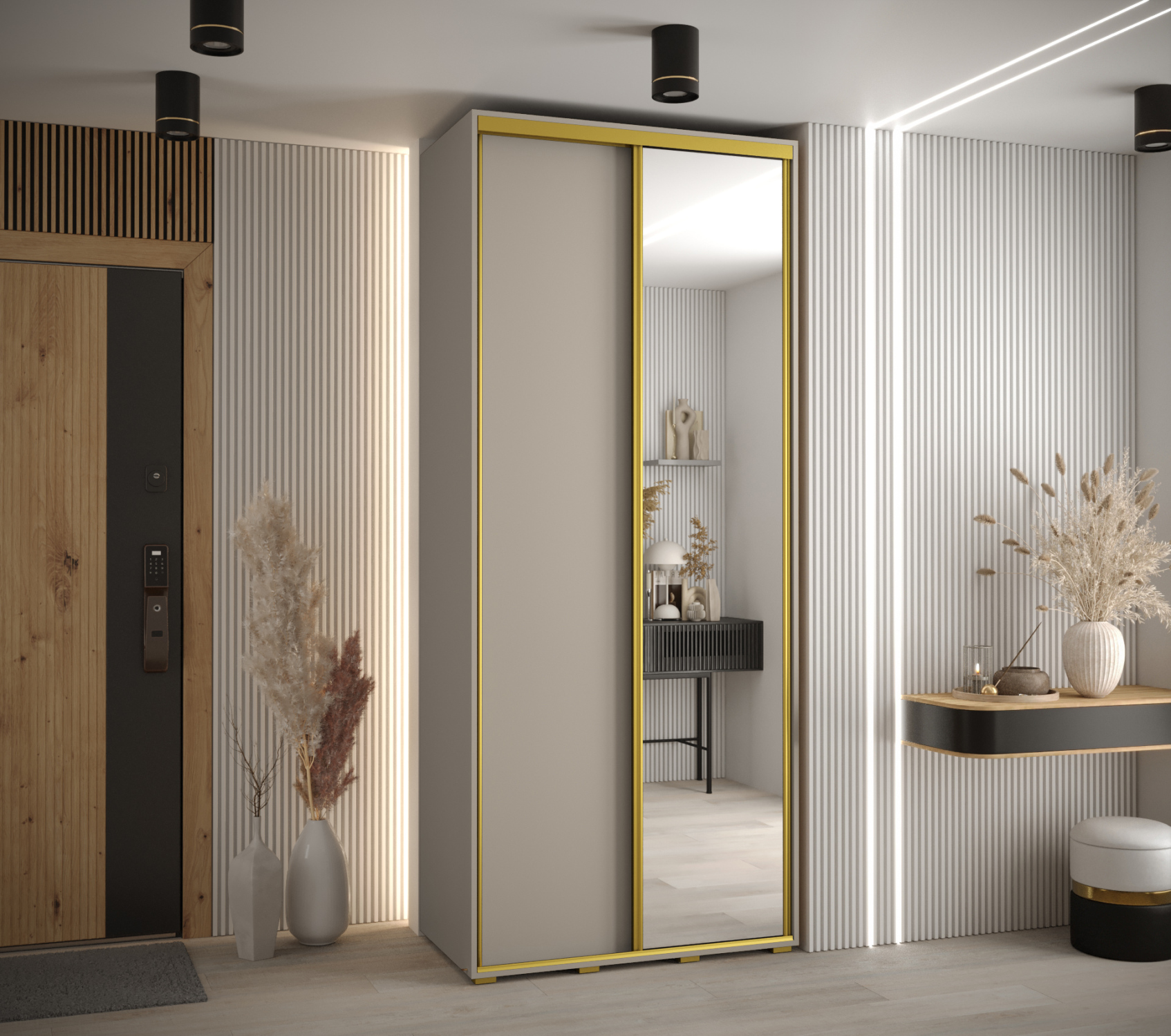 Šatní skříň s policemi 100/40 LORENA 2 - kašmír / zlatá