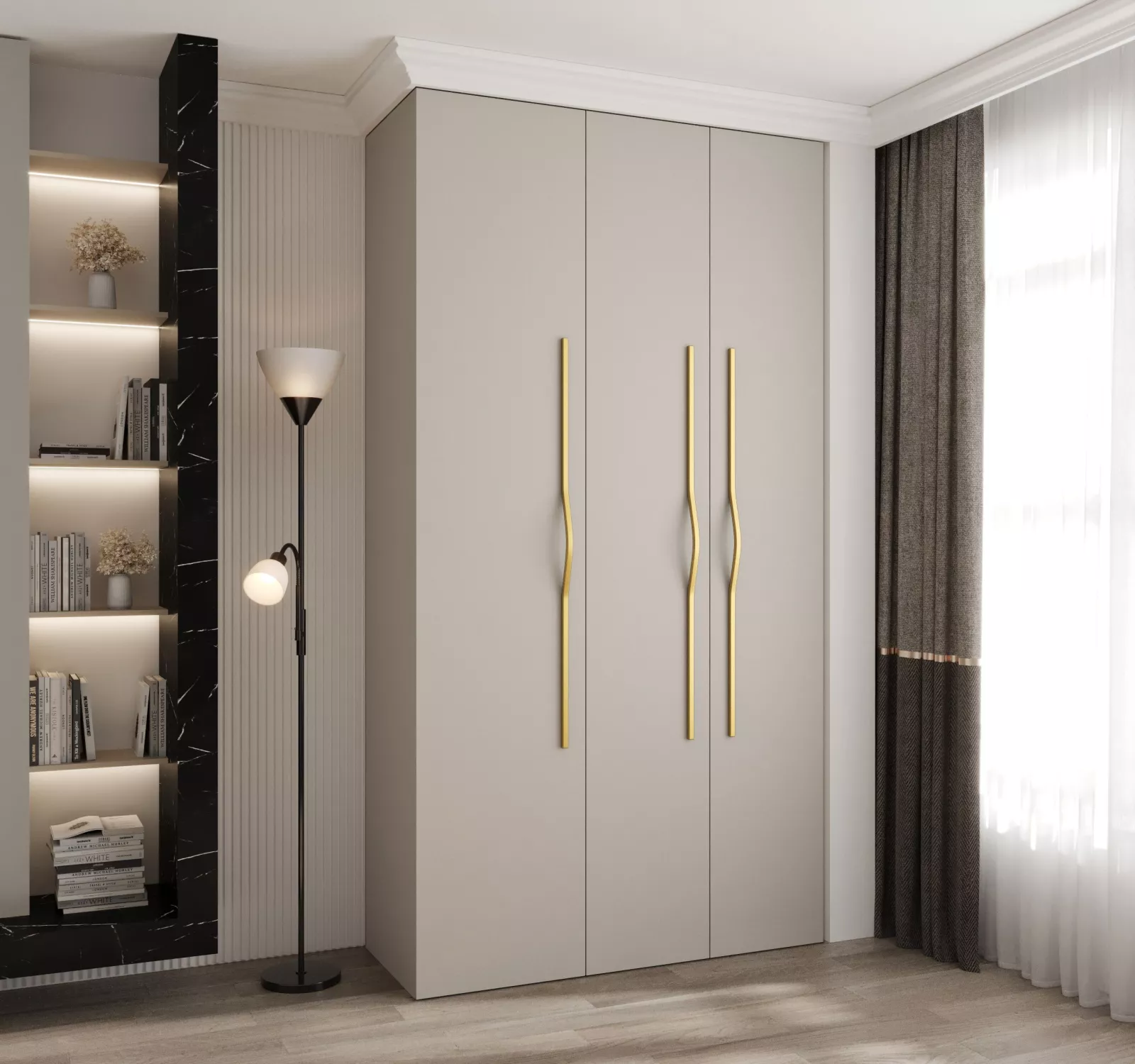 Šatní skříň s policemi 130/40 LORENA 2 - kašmír / zlatá