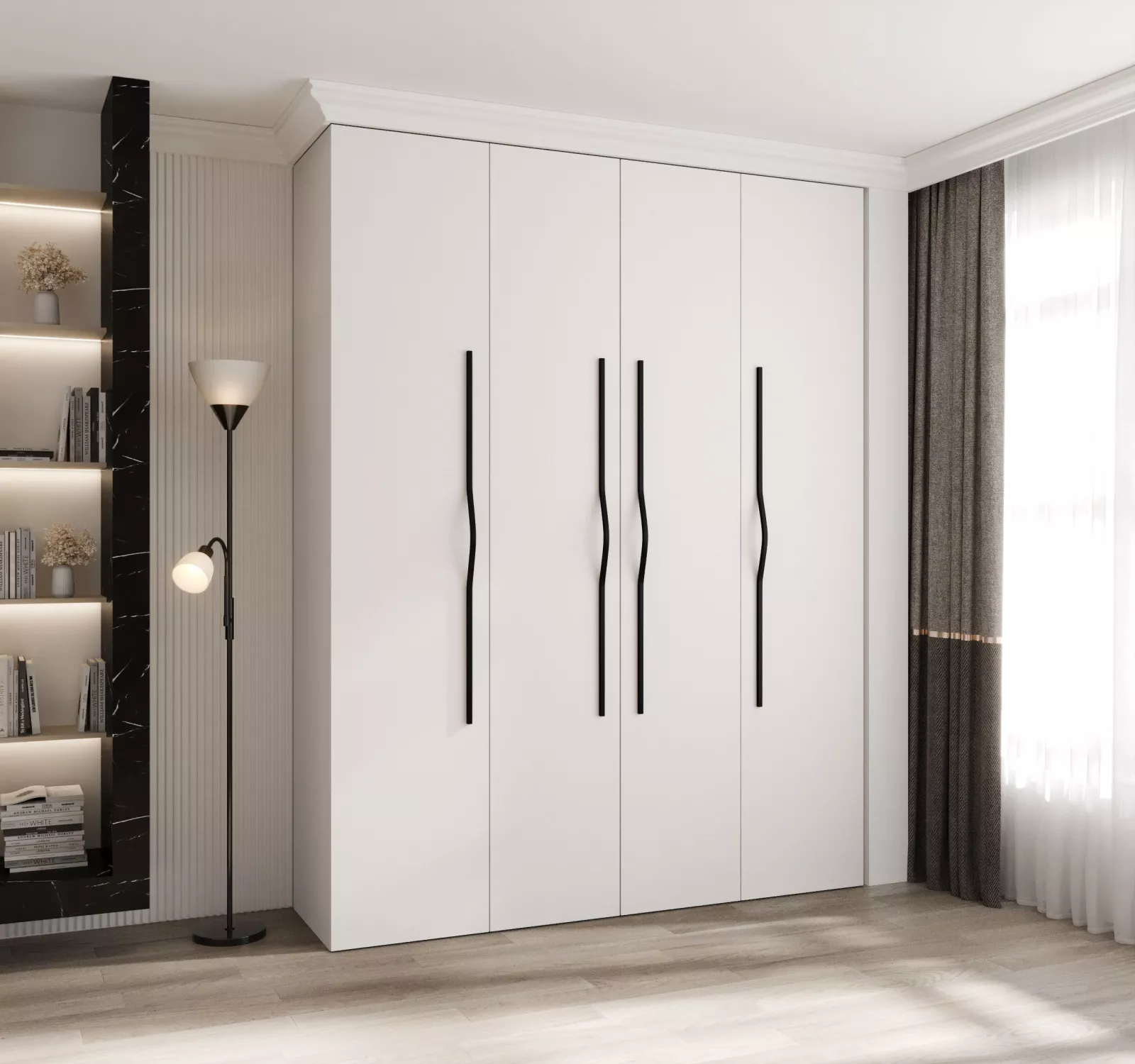 Šatní skříň s policemi LORENA se pyšní svou výškou a menší hloubkou. Využijete tak i malý prostor na maximum. Vnitřní uspořádání je tvořeno policemi a 2 výsuvnými šatními tyčemi. Praktickou součástí dvířek jsou decentní úchyty.