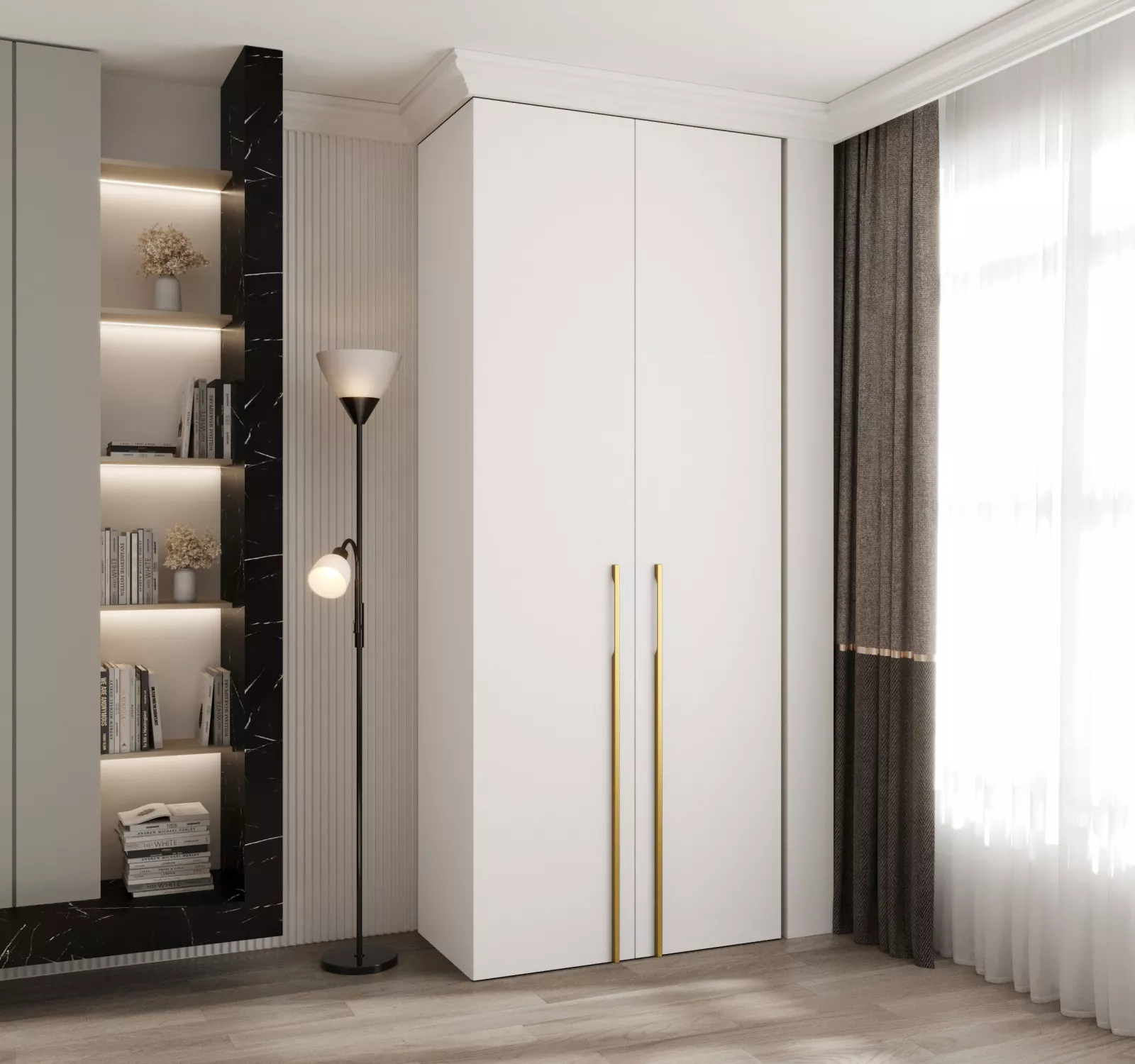 Šatní skříň s policemi 100/40 LORENA 3 - bílá / zlatá