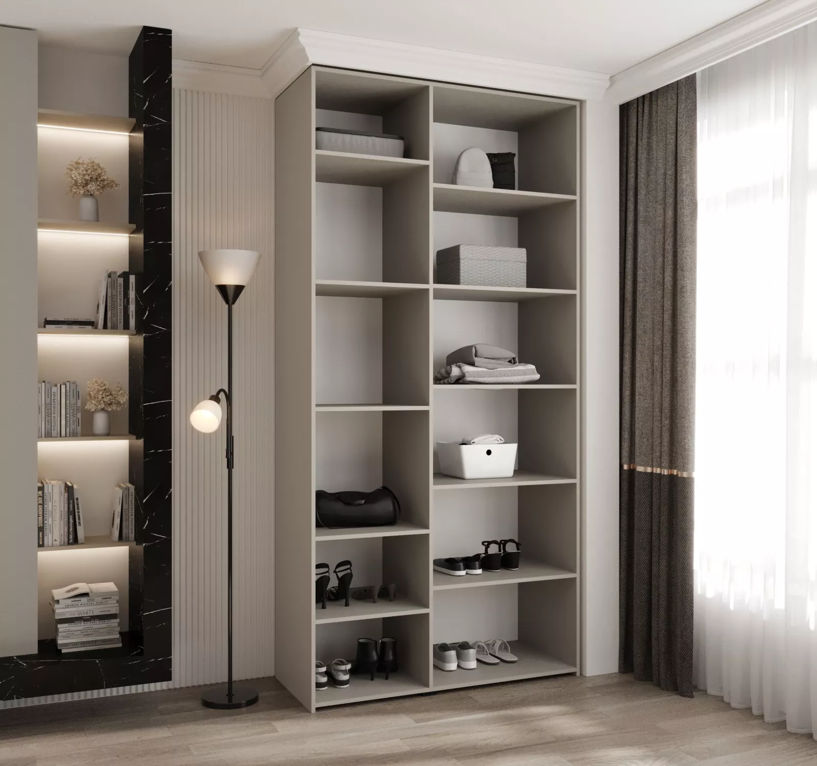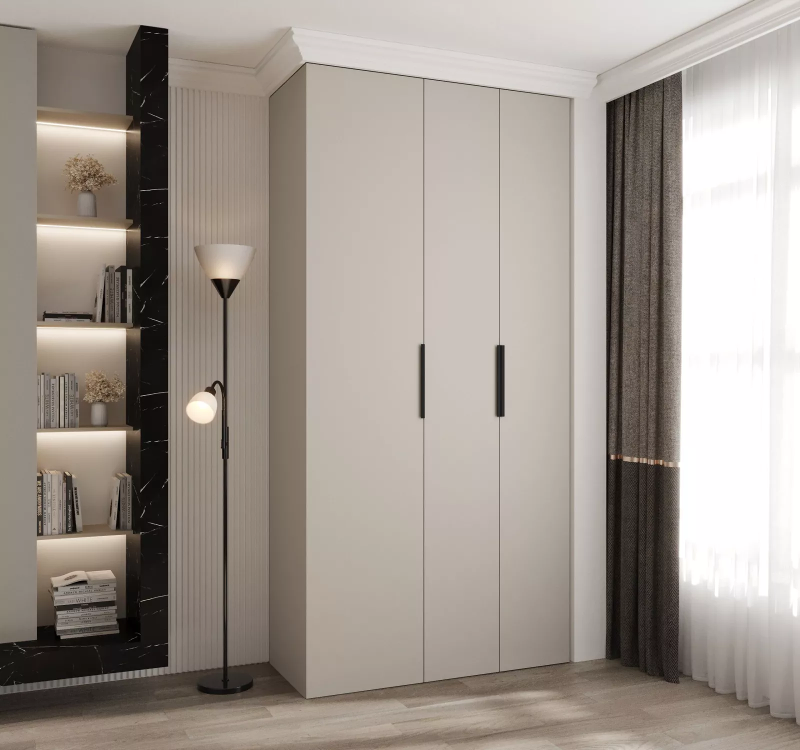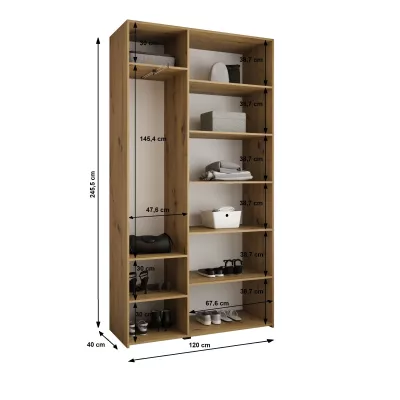 Šatní skříň s policemi 120/40 LORENA 4 - kašmír / černá
