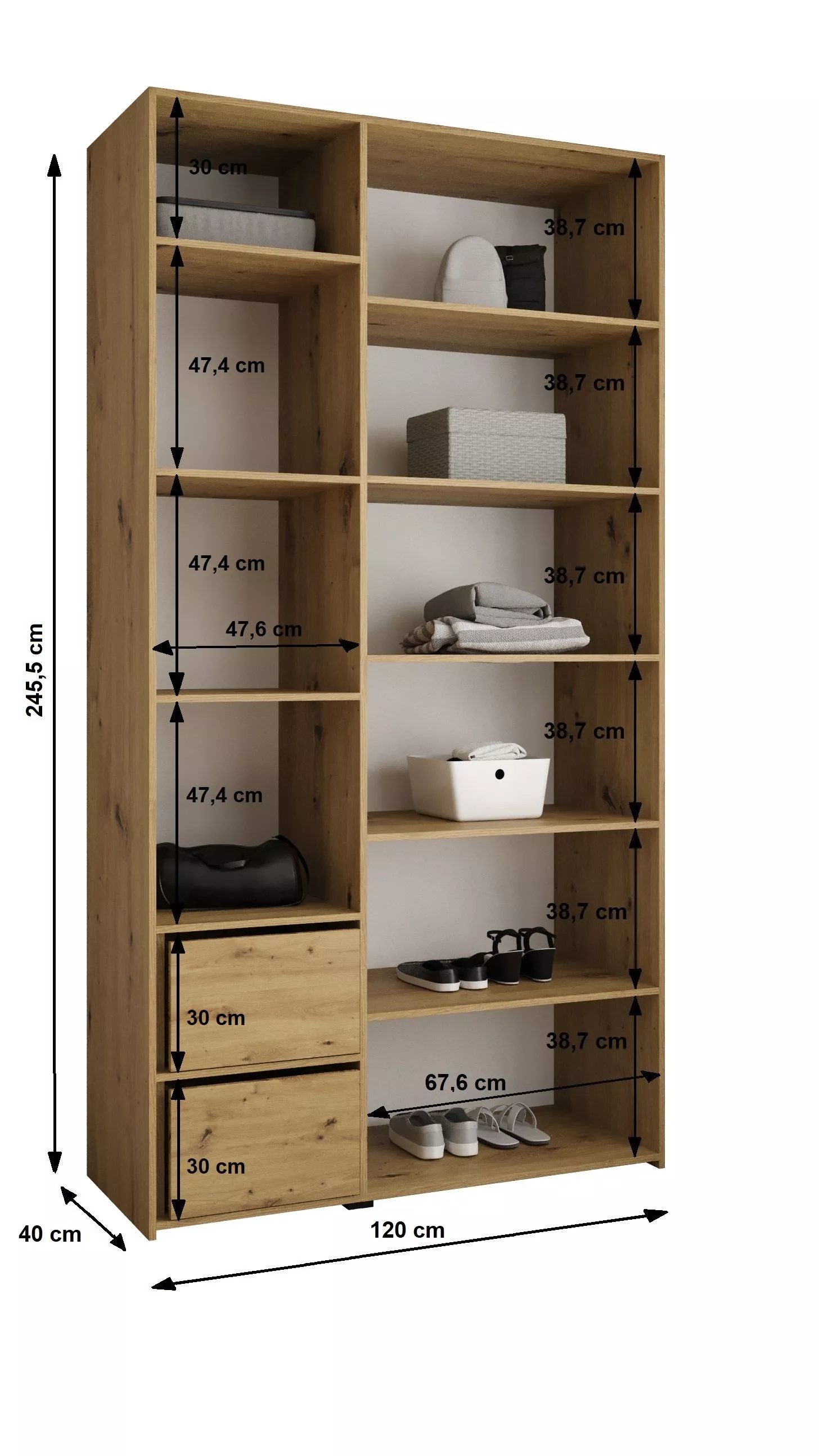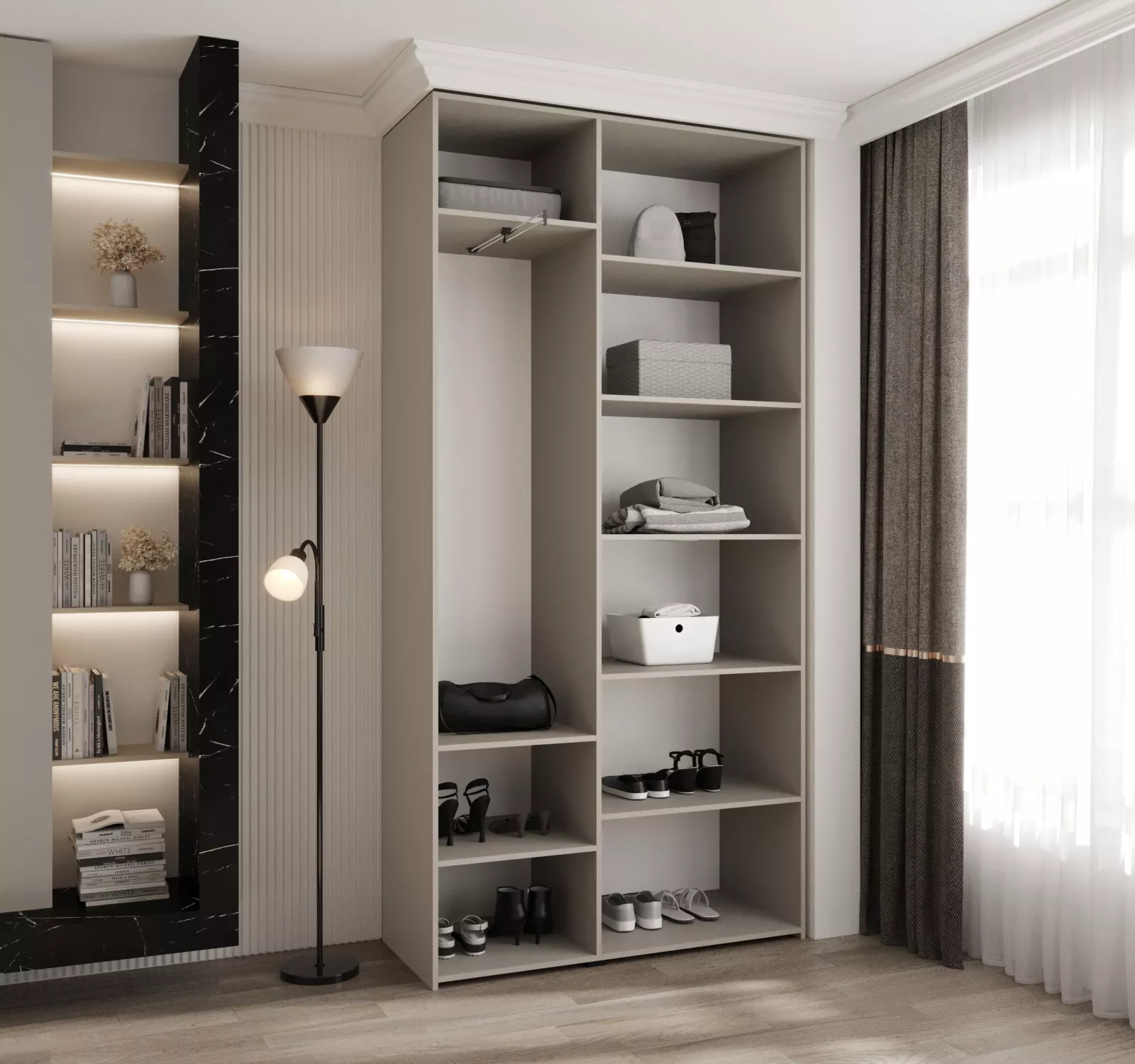 Šatní skříň s policemi 120/40 LORENA 4 - kašmír / zlatá