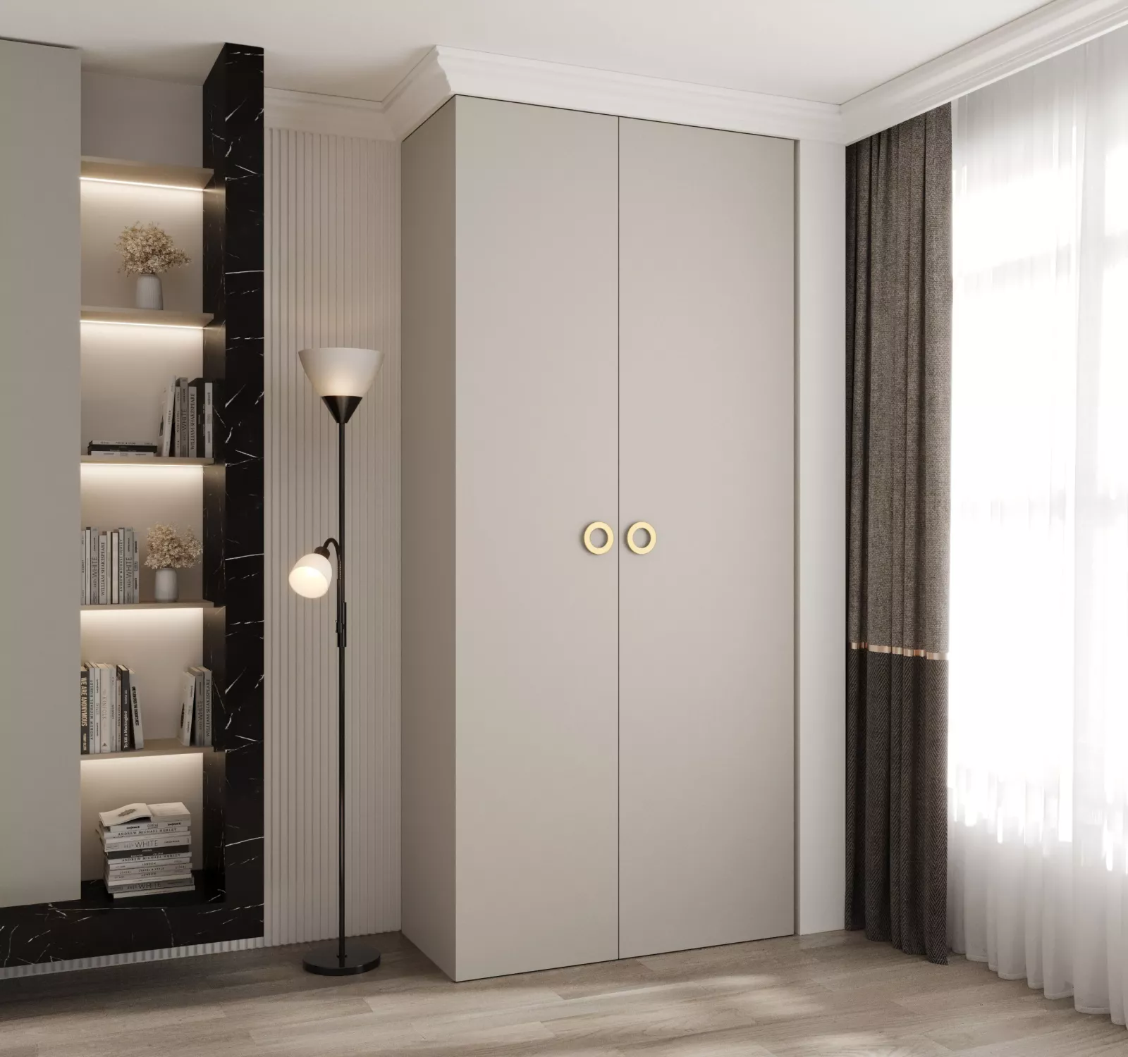 Šatní skříň s policemi 110/50 LORENA 1 - kašmír / zlatá