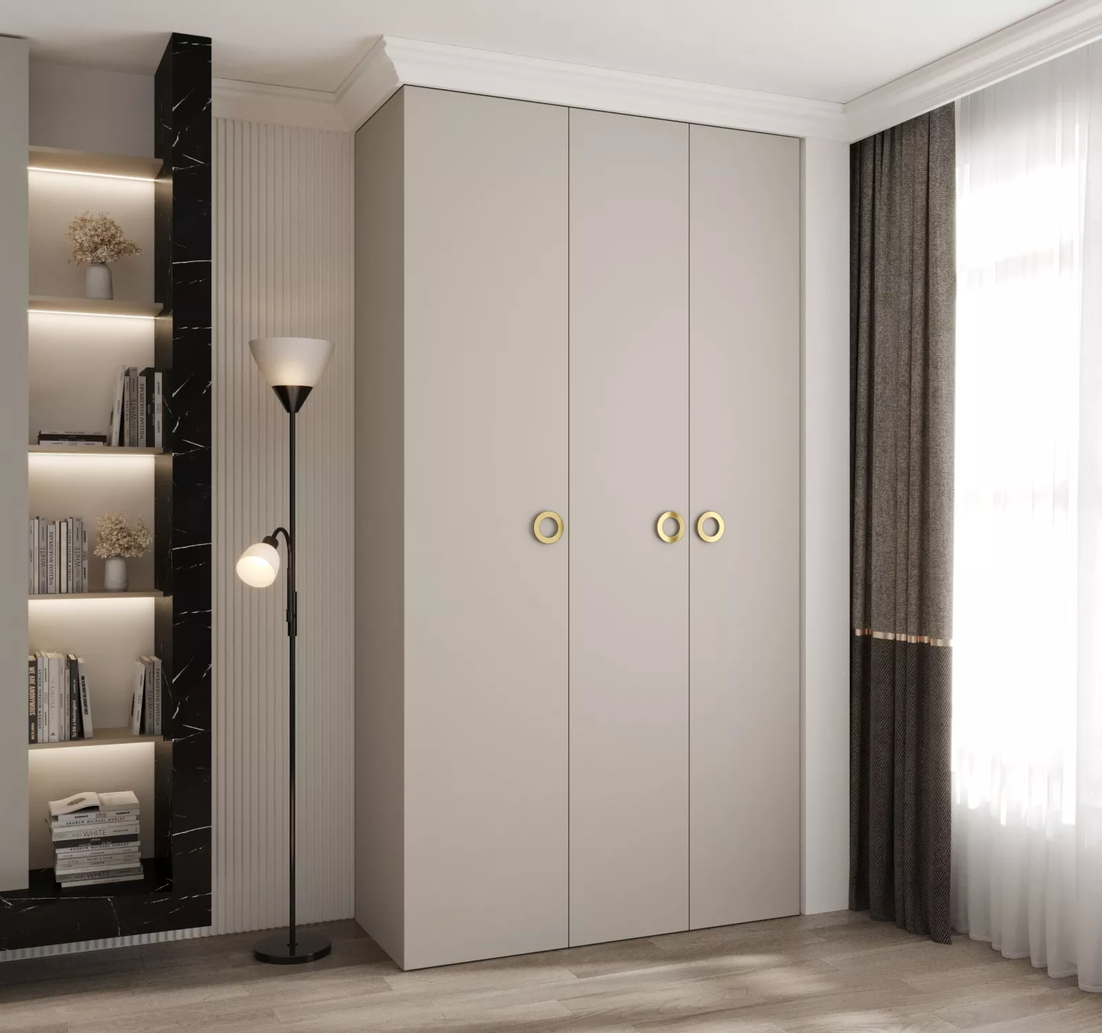Šatní skříň s policemi 130/50 LORENA 1 - kašmír / zlatá