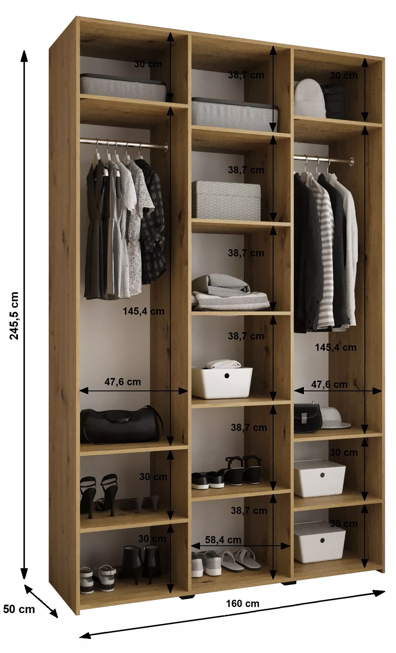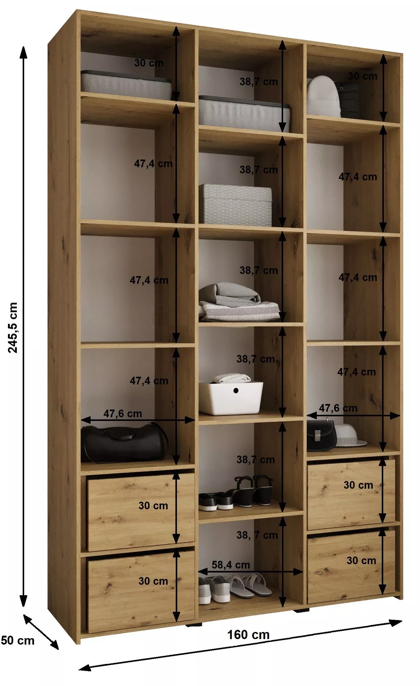 Šatní skříň s policemi 160/50 LORENA 1 - kašmír / černá