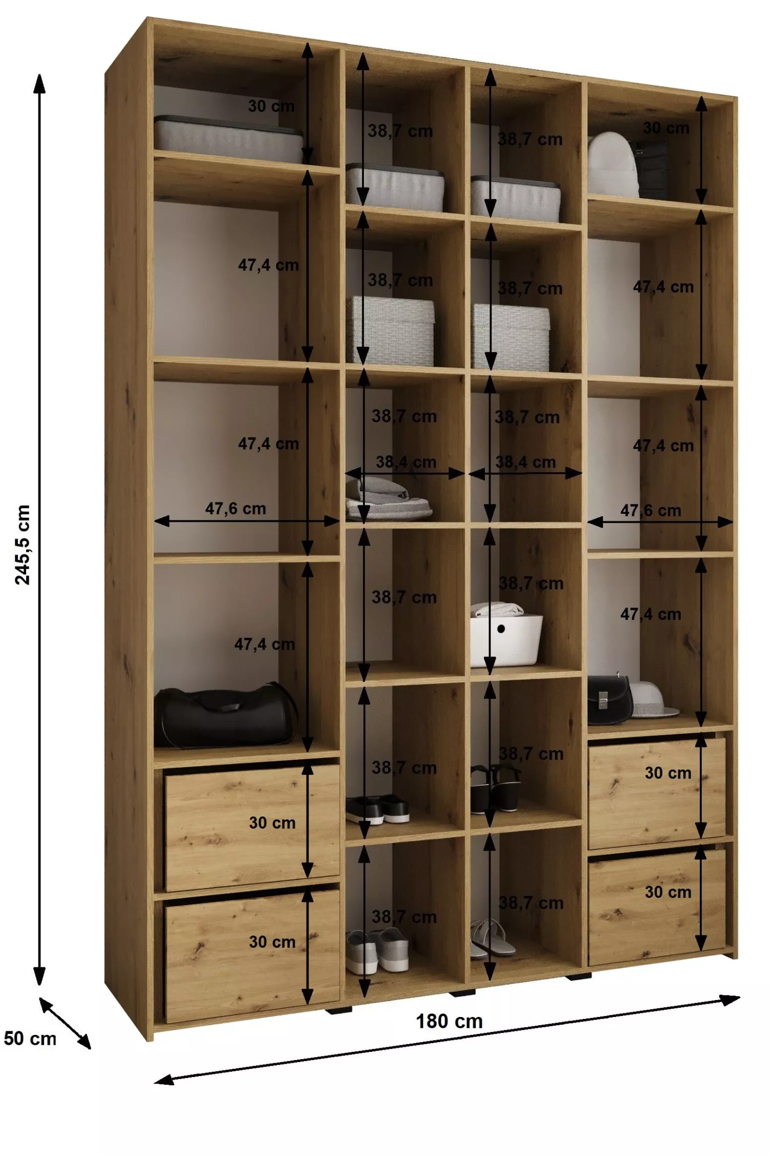 Šatní skříň s policemi 180/50 LORENA 1 - bílá / černá