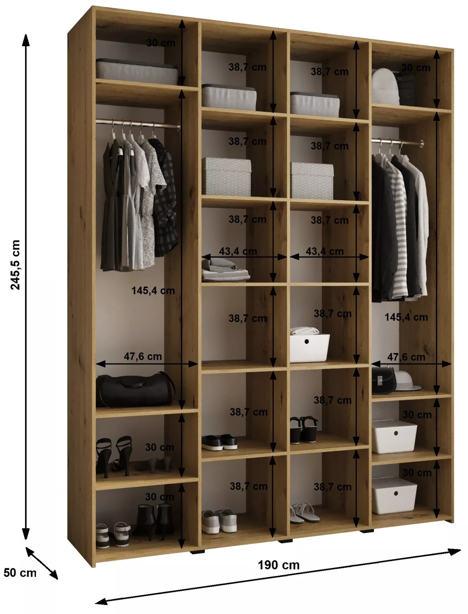 Šatní skříň s policemi LORENA se pyšní svou výškou a menší hloubkou. Využijete tak i malý prostor na maximum. Vnitřní uspořádání je tvořeno policemi a 2 šatními tyčemi. Praktickou součástí dvířek jsou decentní úchyty.
