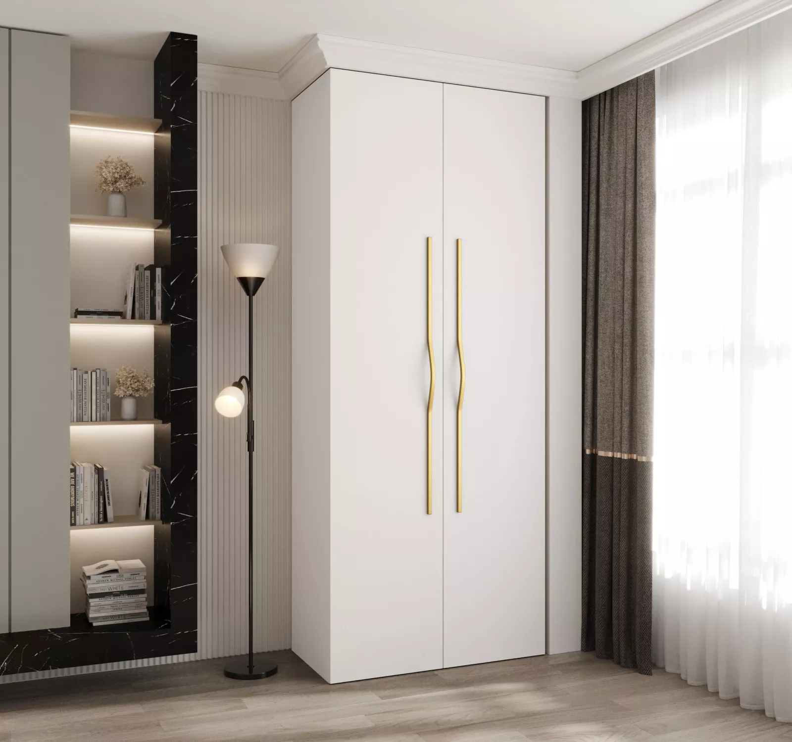 Šatní skříň s policemi 100/50 LORENA 2 - bílá / zlatá