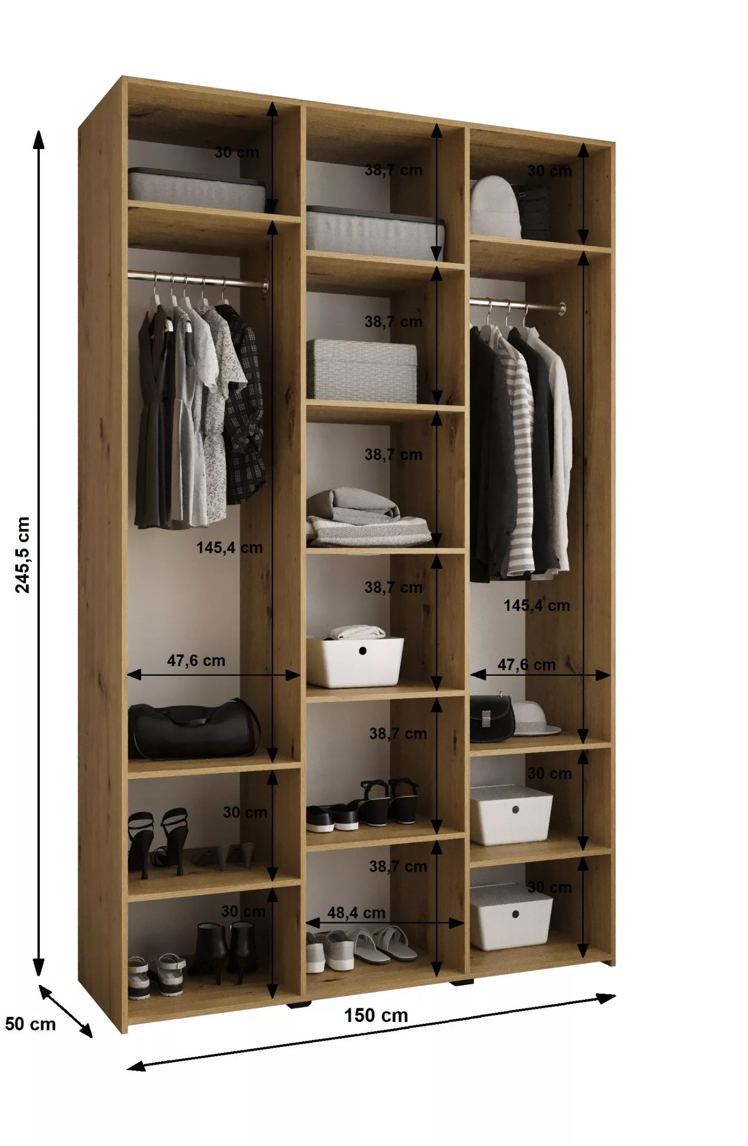 Šatní skříň s policemi 150/50 LORENA 2 - kašmír / zlatá