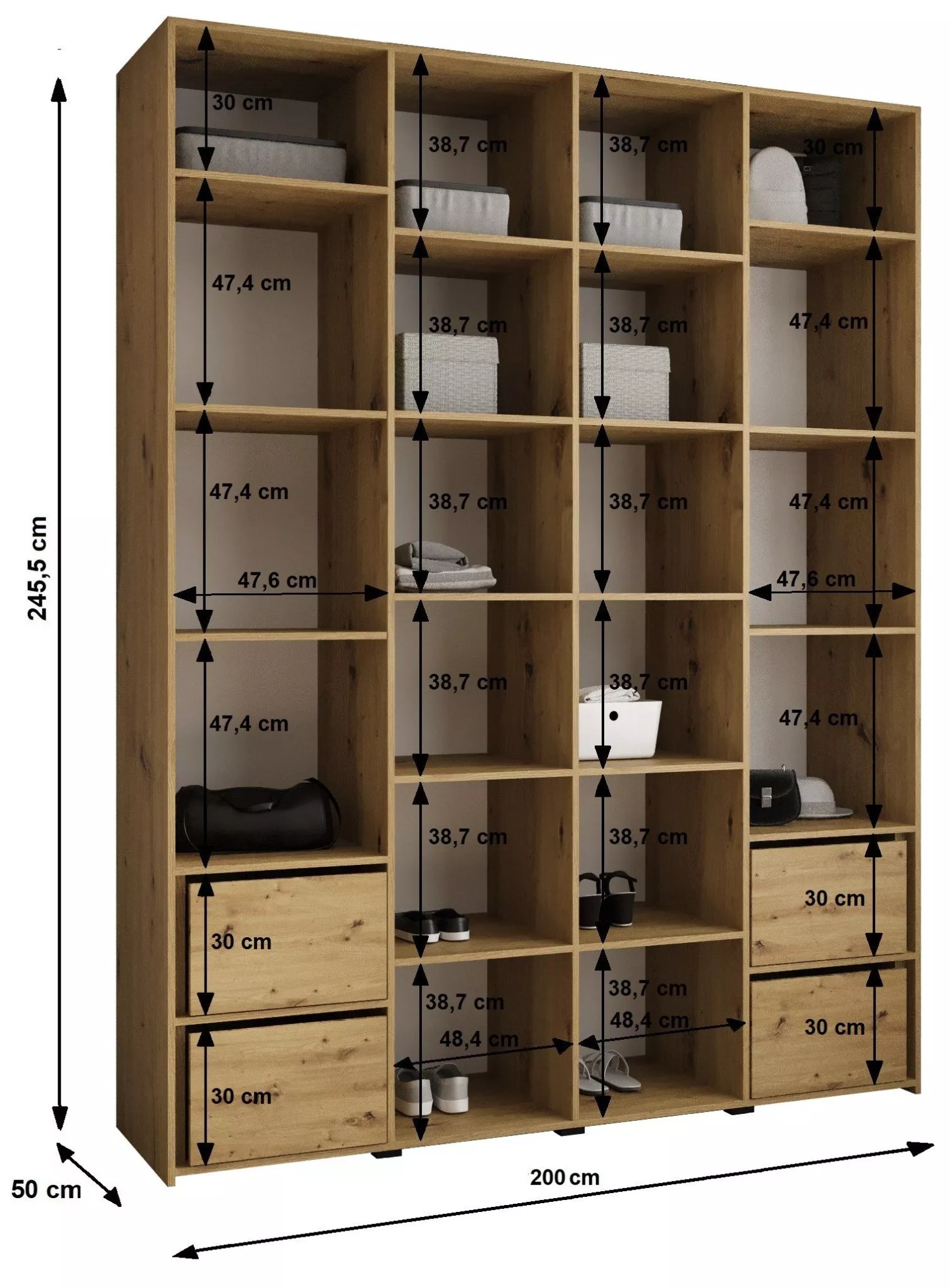 Šatní skříň s policemi 200/50 LORENA 2 - kašmír / zlatá