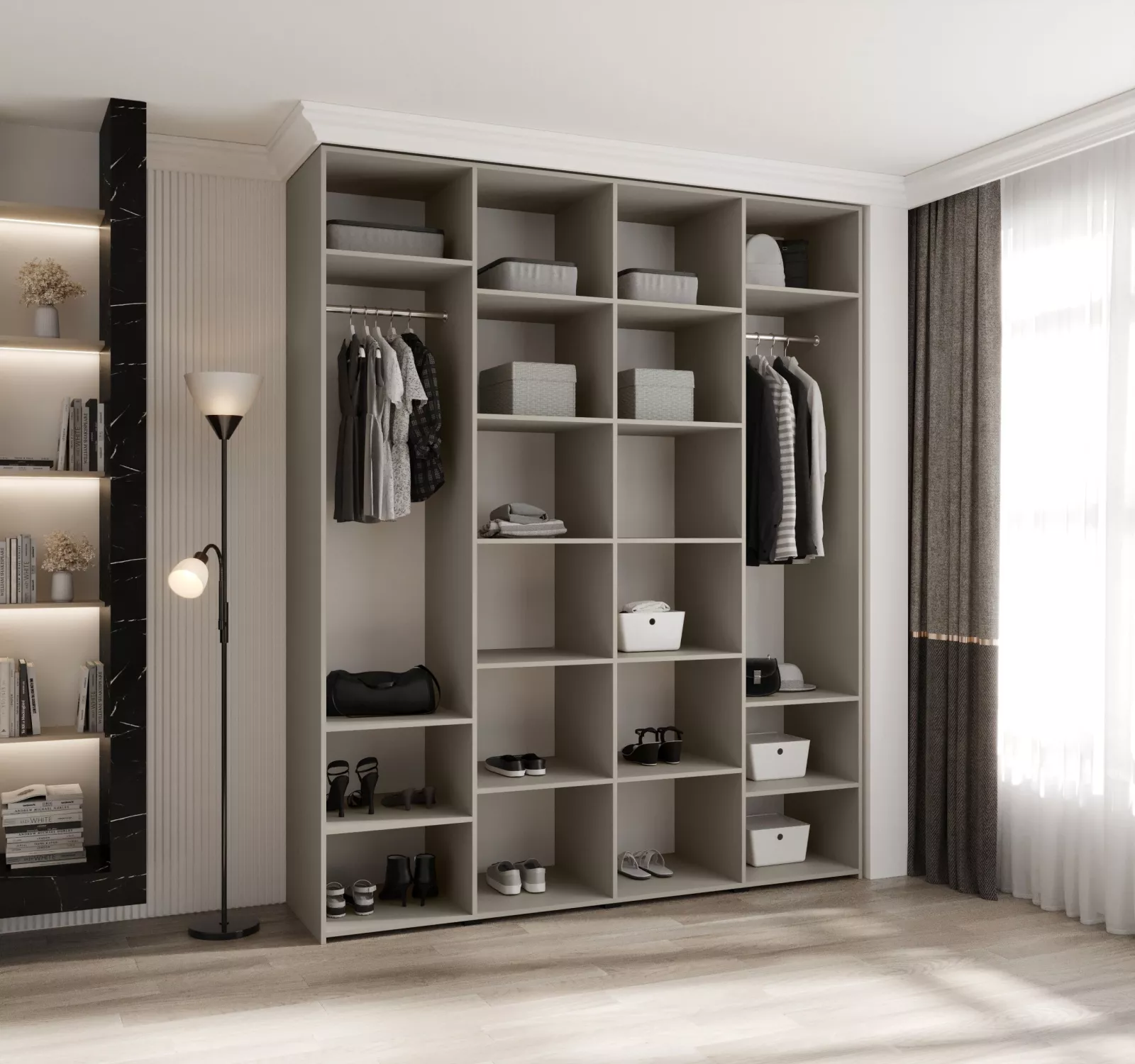 Přídavné šuplíky (včetně pojezdů) a přídavné police vyobrazené na fotografii najdete k dokoupení v sekci Doporučujeme přikoupit. Do skříně je možné nainstalovat 2 sety přídavných šuplíků a 2 sady přídavných polic.