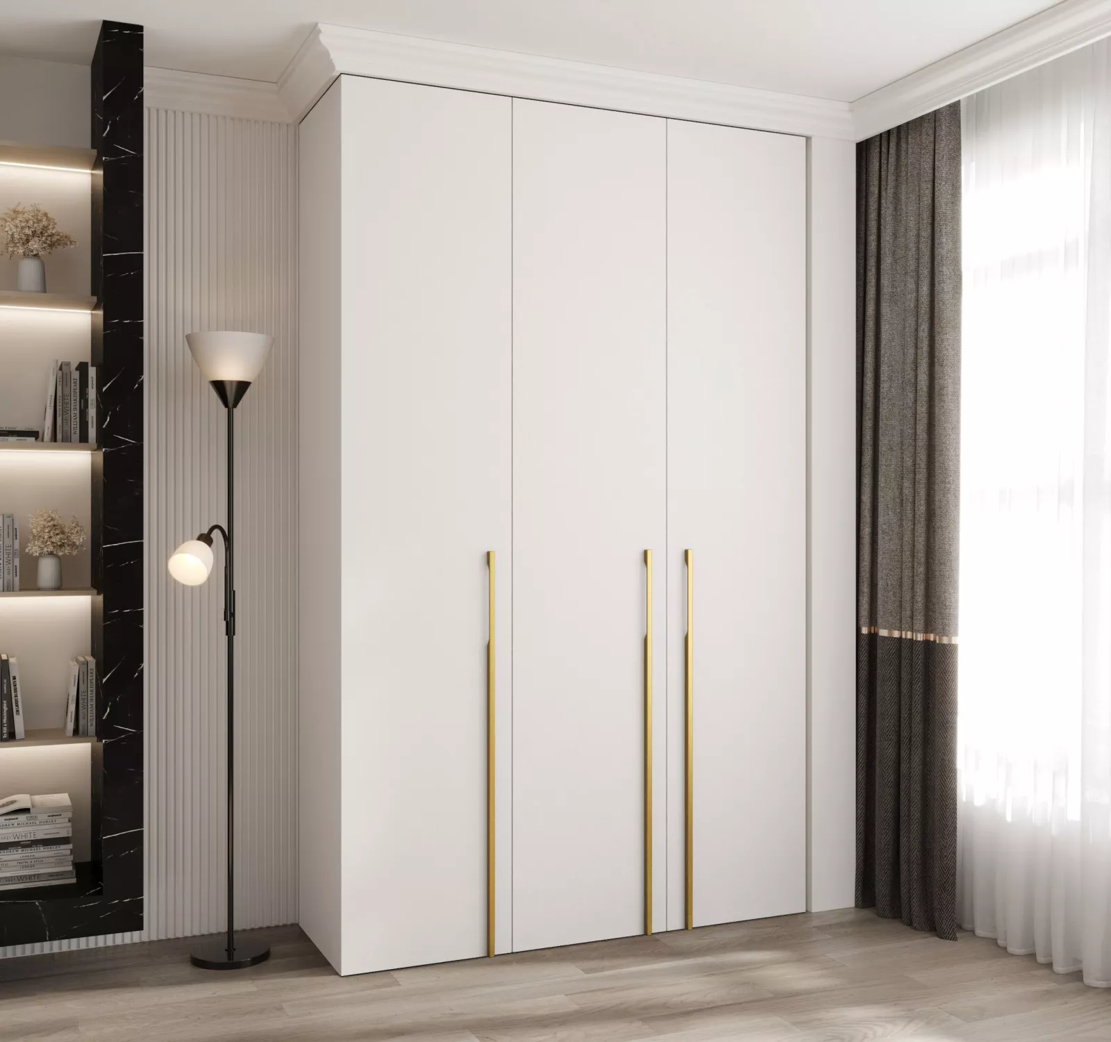 Šatní skříň s policemi 150/50 LORENA 3 - bílá / zlatá