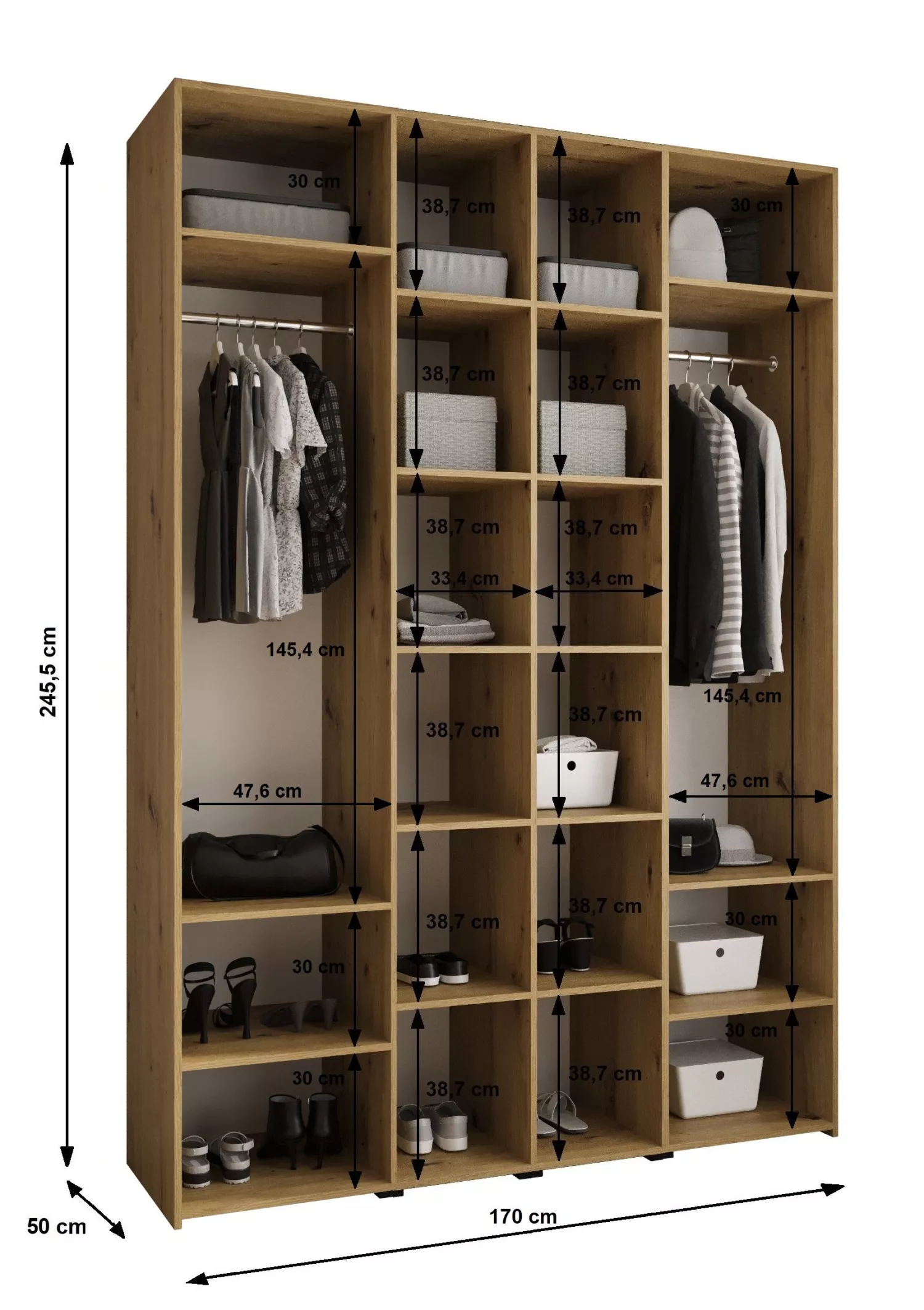 Šatní skříň s policemi LORENA se pyšní svou výškou a menší hloubkou. Využijete tak i malý prostor na maximum. Vnitřní uspořádání je tvořeno policemi a 2 šatními tyčemi. Praktickou součástí dvířek jsou decentní úchyty.