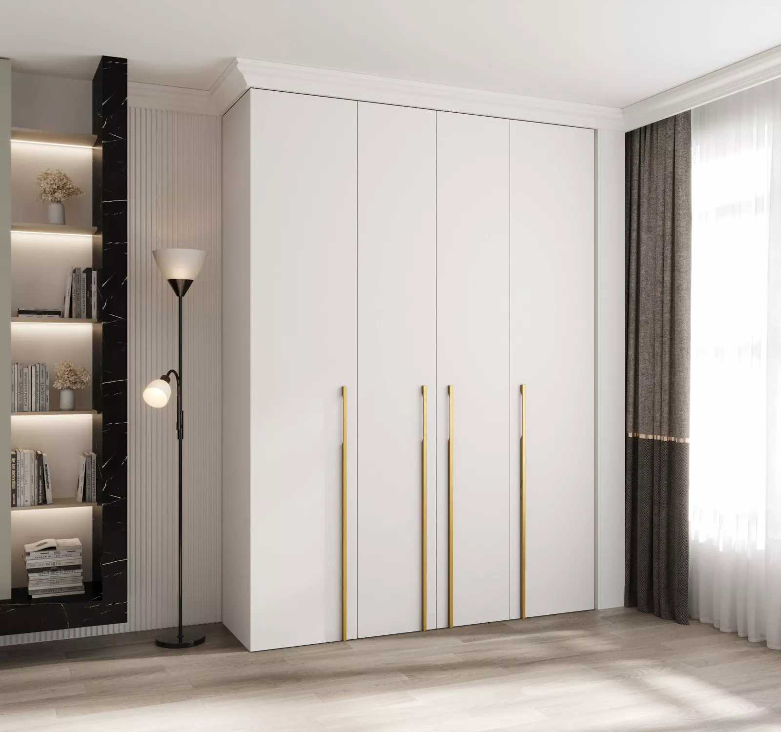 Šatní skříň s policemi LORENA se pyšní svou výškou a menší hloubkou. Využijete tak i malý prostor na maximum. Vnitřní uspořádání je tvořeno policemi a 2 šatními tyčemi. Praktickou součástí dvířek jsou decentní úchyty.