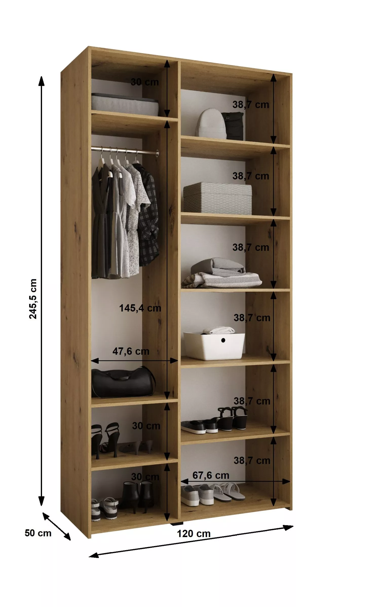 Šatní skříň s policemi LORENA se pyšní svou výškou a menší hloubkou. Využijete tak i malý prostor na maximum. Vnitřní uspořádání je tvořeno policemi a šatní tyčí. Praktickou součástí dvířek jsou decentní úchyty.