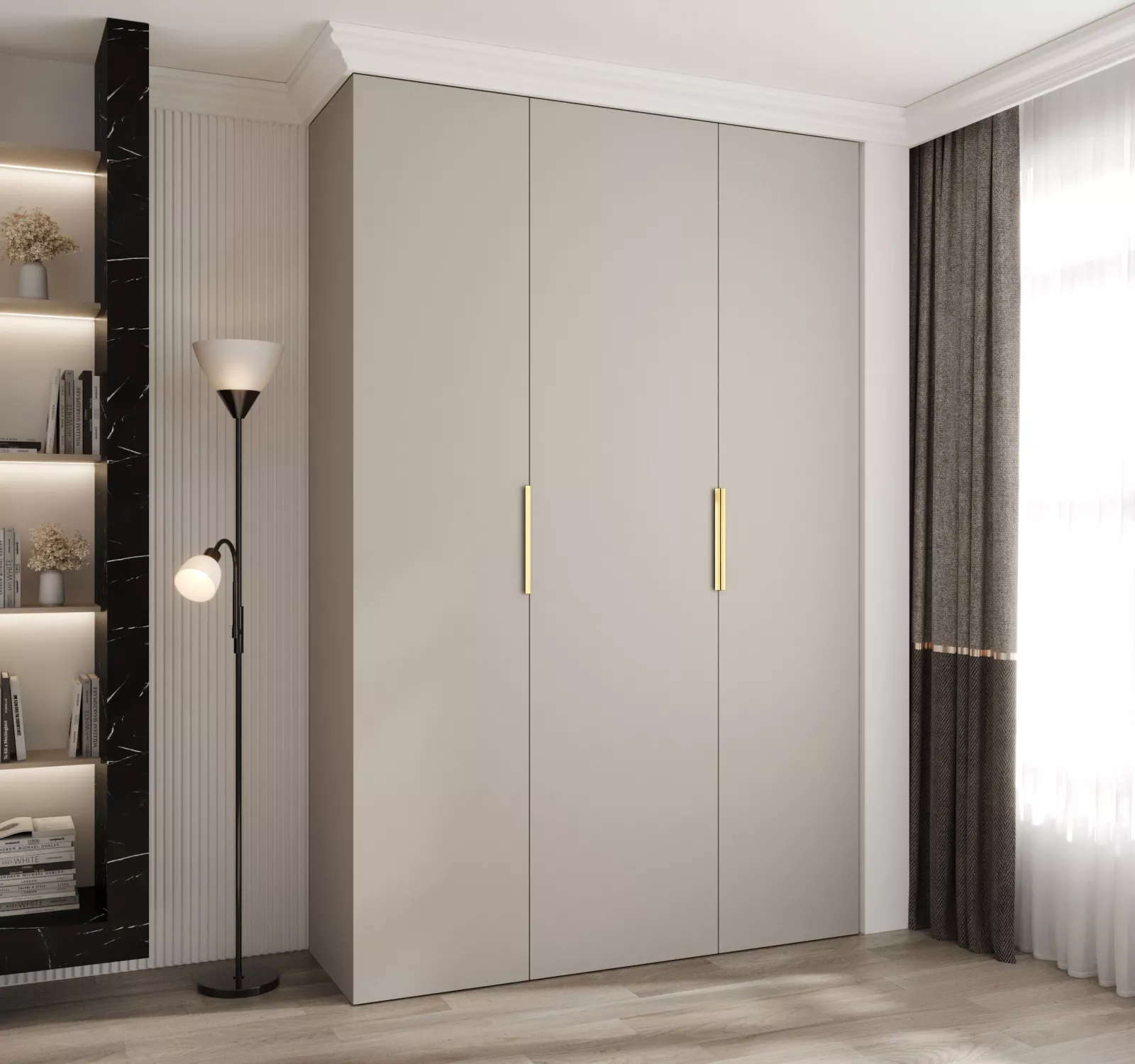 Šatní skříň s policemi 160/50 LORENA 4 - kašmír / zlatá