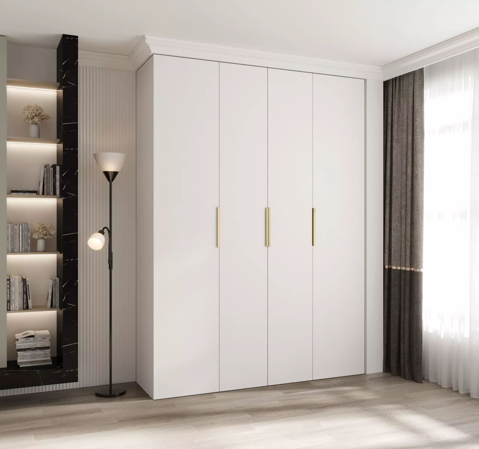 Šatní skříň s policemi 180/50 LORENA 4 - bílá / zlatá