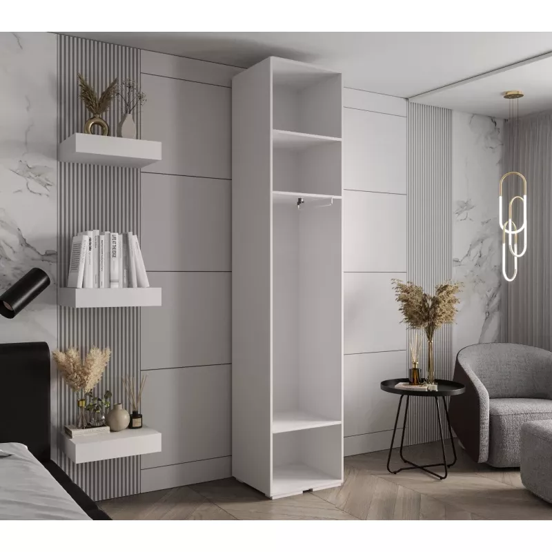 Předsíňová skříň SAVELA 3 se hodí do všech menších předsíní ale i ložnic či šaten. Disponuje výsuvným věšákem a 3 policemi.