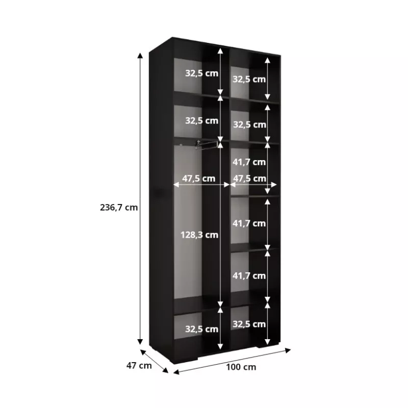 Šatní skříň SAVELA 3 se hodí do všech ložnic nebo šaten. Disponuje 2 výsuvnými věšáky a 6 policemi.