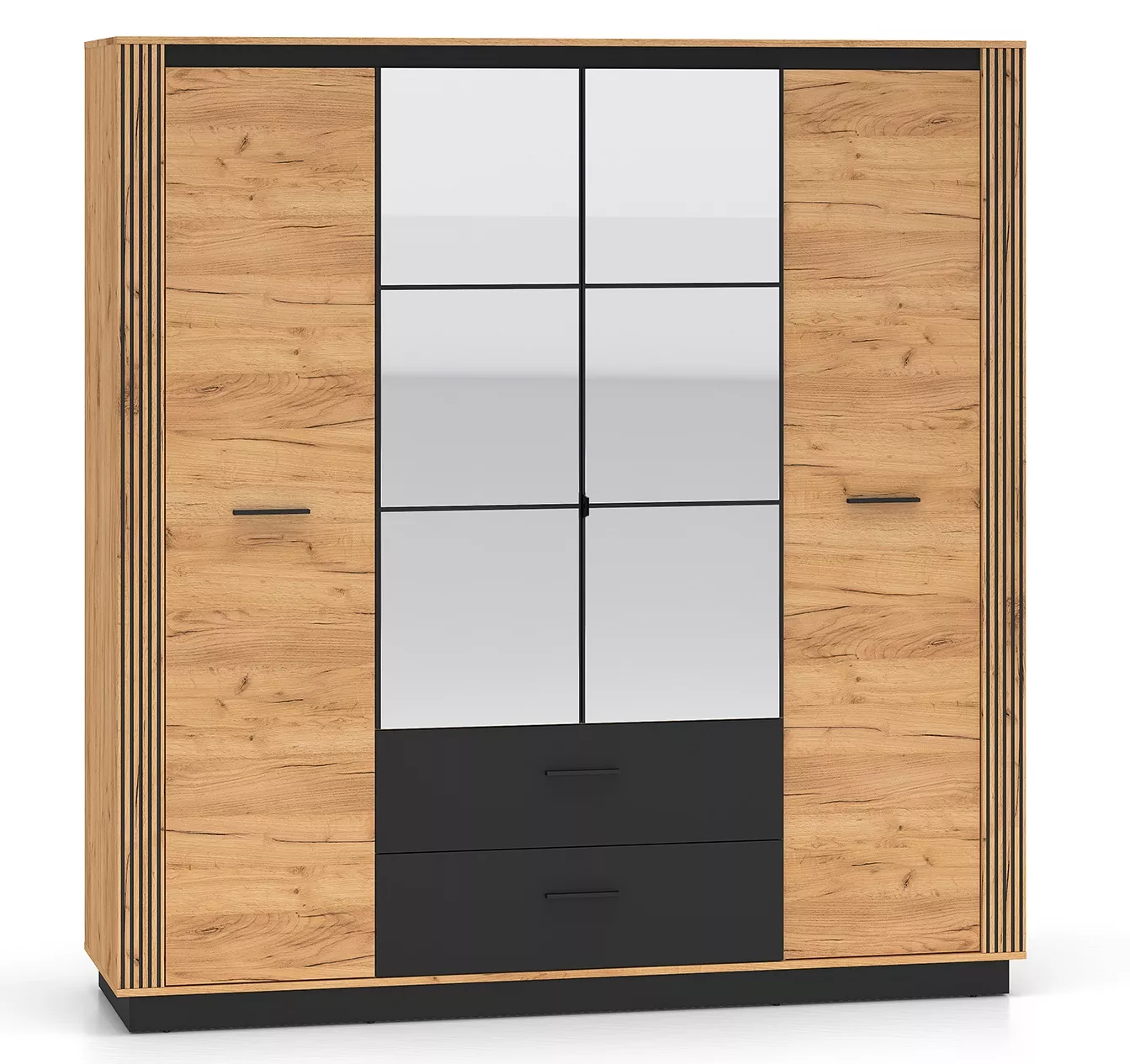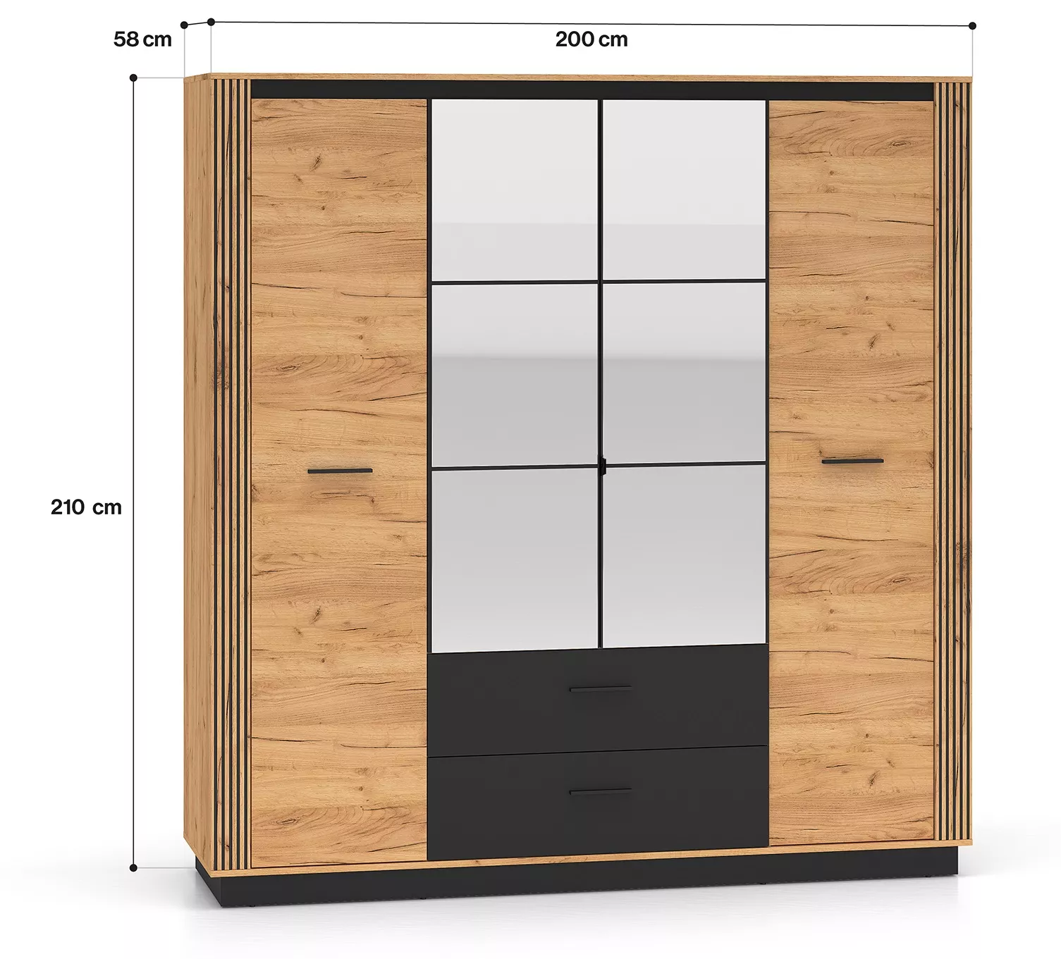 Čtyřdvéřová šatní skříň 200 cm MING - dub craft zlatý / černá