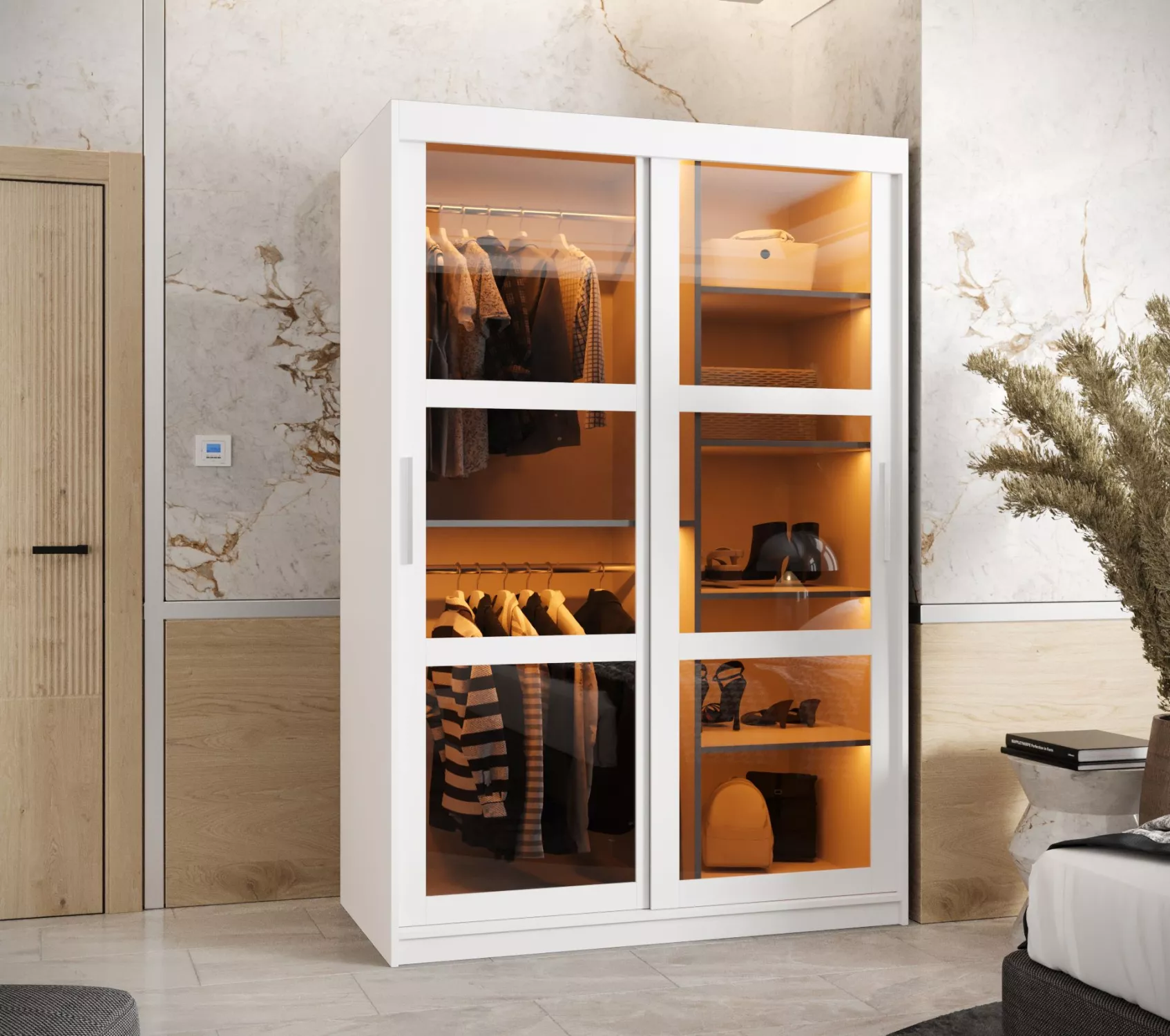 Šatní skříň KATIE 3 - 120 cm, bílá / stříbrná