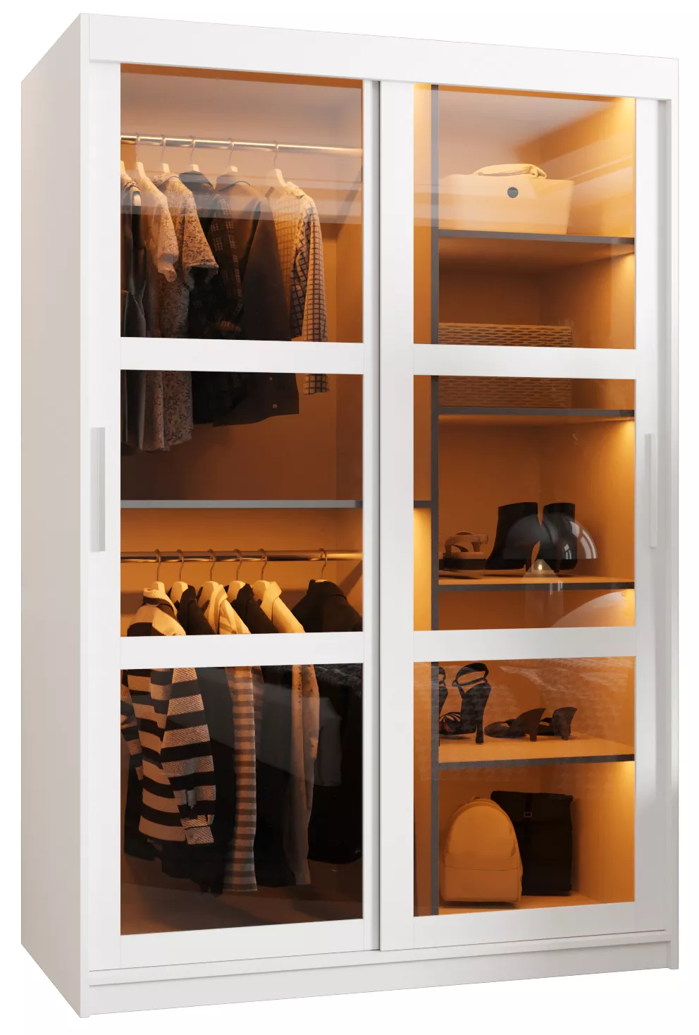 Šatní skříň KATIE 3 se hodí do všech moderních ložnic či šatníků. Vnitřek skříně je vybaven policovým systémem a 2 šatními tyčemi.