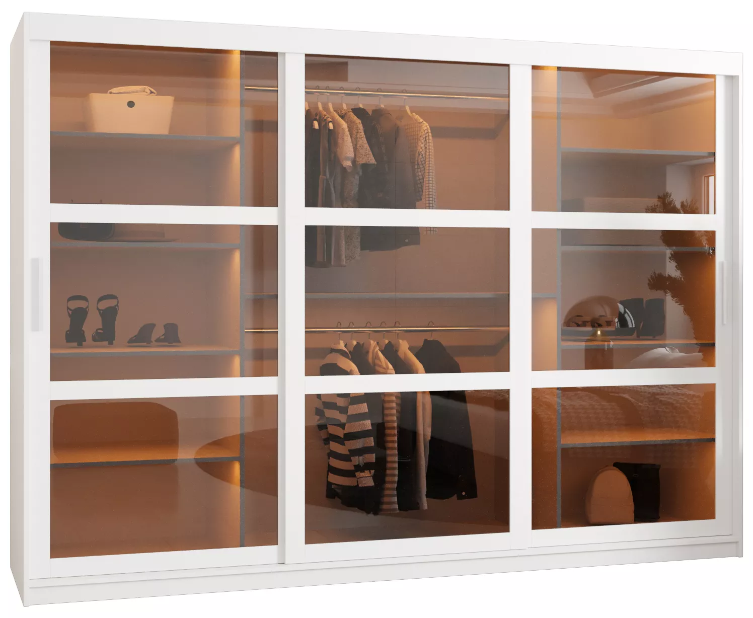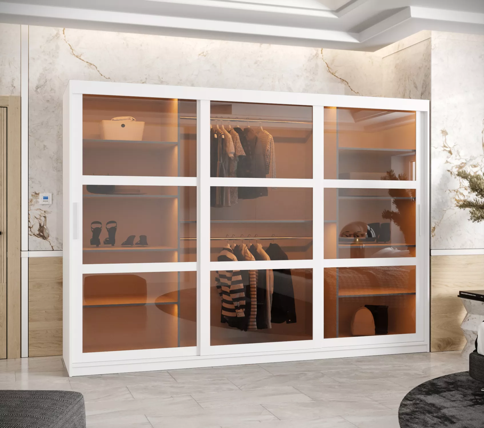 Šatní skříň KATIE 3 - 250 cm, bílá / stříbrná