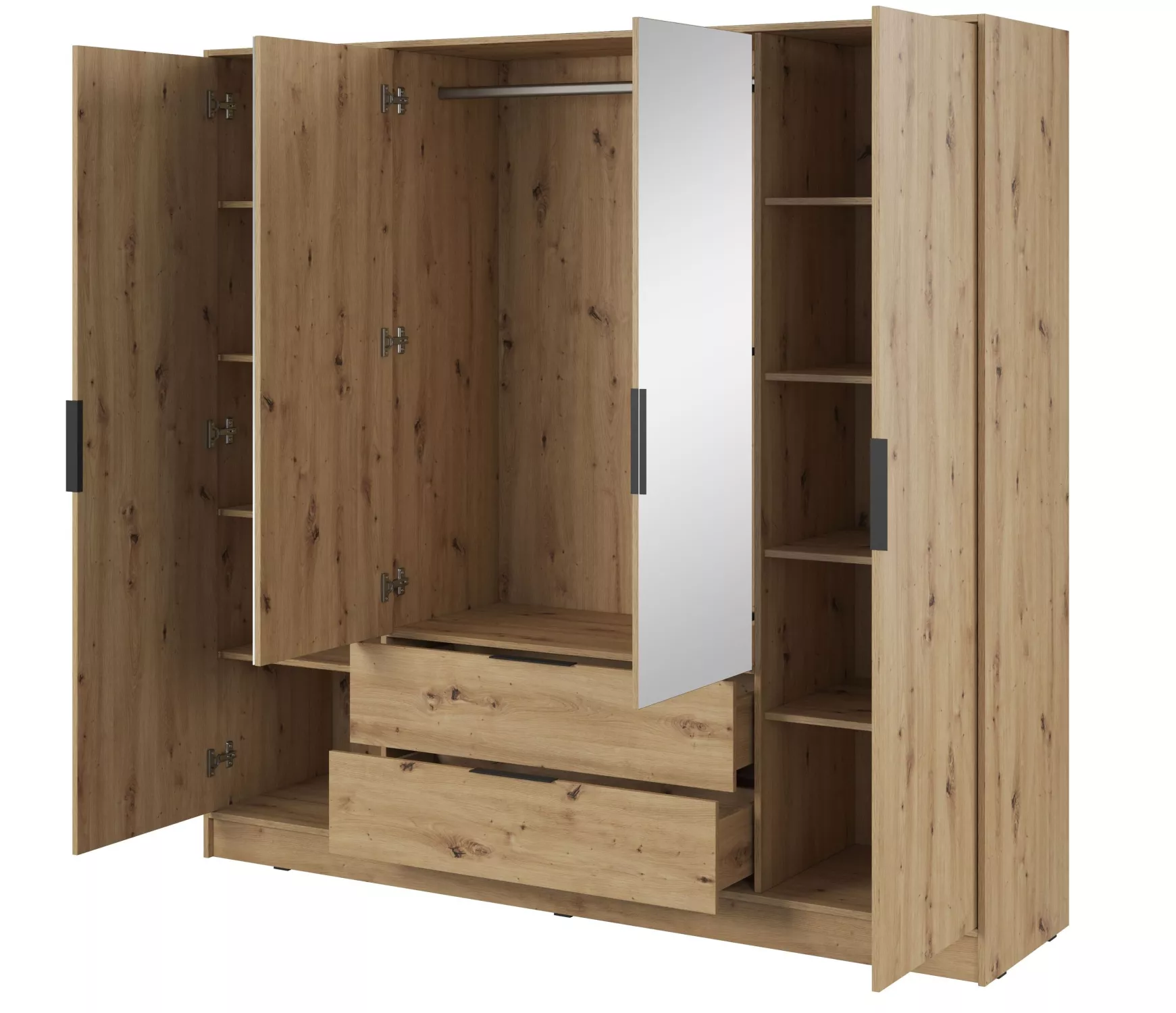 Kombinovaná šatní skříň 206 cm COSIMA se zrcadlem - dub artisan