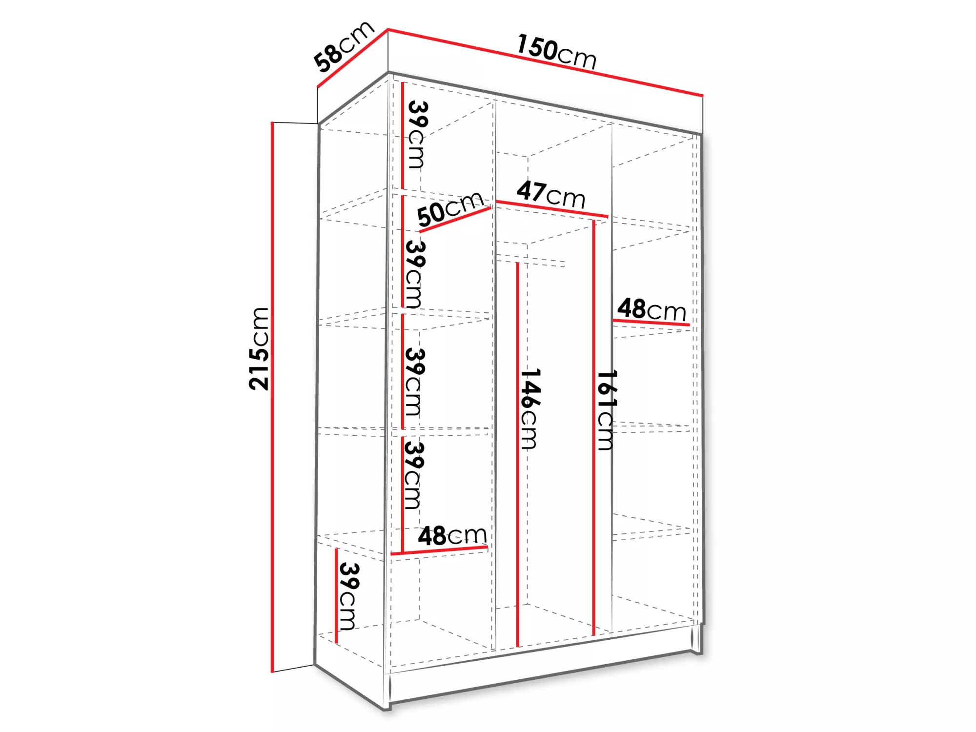 Hledáte funkční a stylovou šatní skříň? Model SHEELA se zrcadlem, šatní tyčí na zavěšení uprostřed a praktickými policemi po obou stranách splní vaše očekávání. Výška 215 cm umožňuje pohodlně ukládat i dlouhé šaty nebo kabáty, zatímco police poskytují prostor pro složené oblečení.