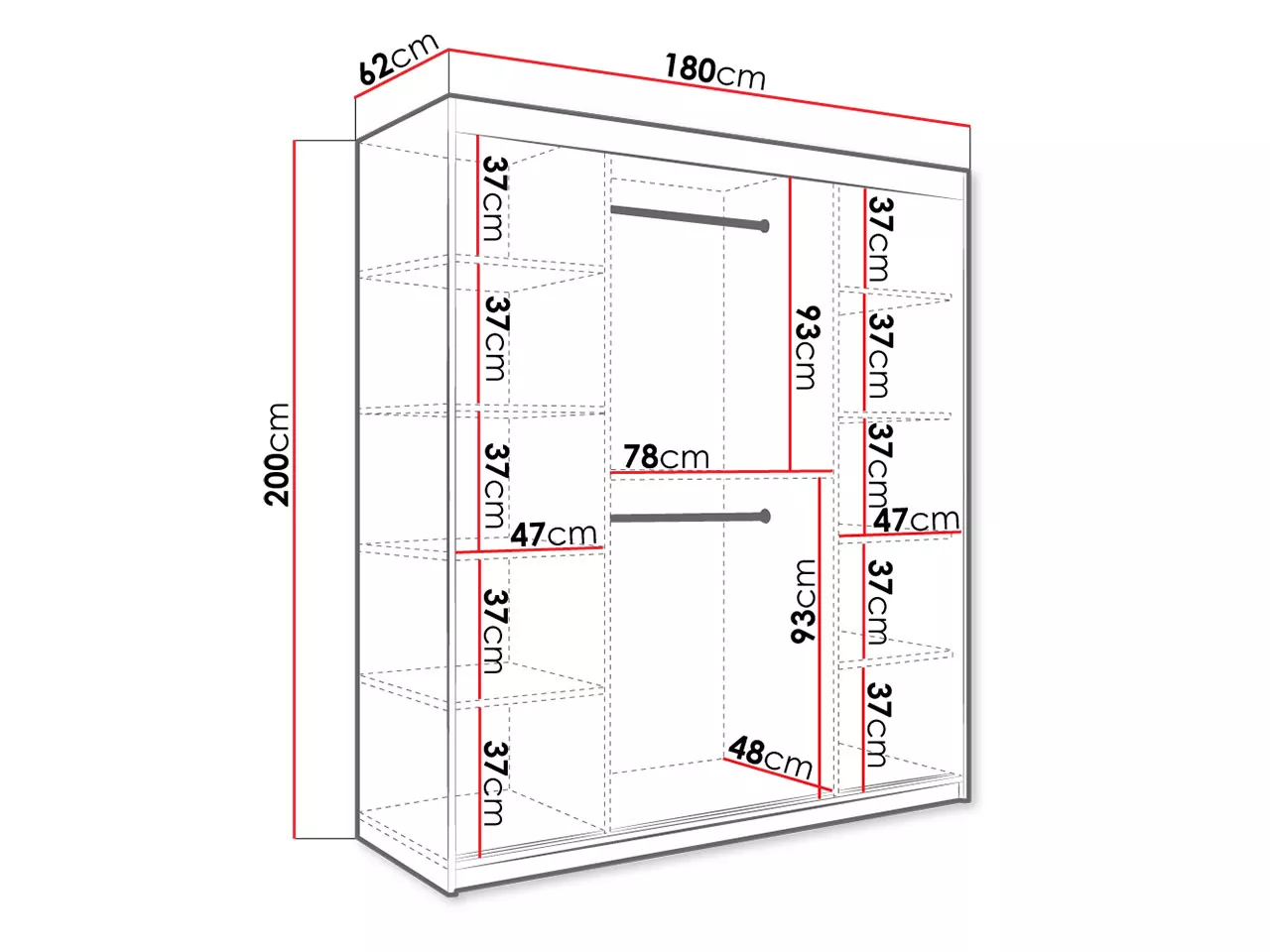 Vneste do své ložnice pořádek a styl díky moderní šatní skříni CARSON. Skříň je vybavena posuvnými dveřmi pro snadnější manipulaci, praktické zrcadlo opticky zvětší prostor. Díky hlubokým policím a 2 šatním tyčím snadno uspořádáte jak oblečení, tak sezónní doplňky.