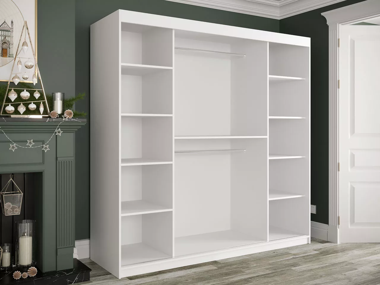 Vneste do své ložnice pořádek a styl díky moderní šatní skříni CARSON. Skříň je vybavena posuvnými dveřmi pro snadnější manipulaci, praktické zrcadlo opticky zvětší prostor. Díky hlubokým policím a 2 šatním tyčím snadno uspořádáte jak oblečení, tak sezónní doplňky.